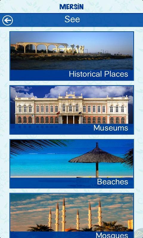In Mersin application, you will be able to find many information about this beautiful Mediterranean city.