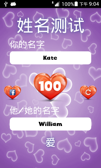 Enter the your name and the name of the person you love and the test will calculate the percentage and test your love by comparing your names and calculating your personal couple love match.(*1)