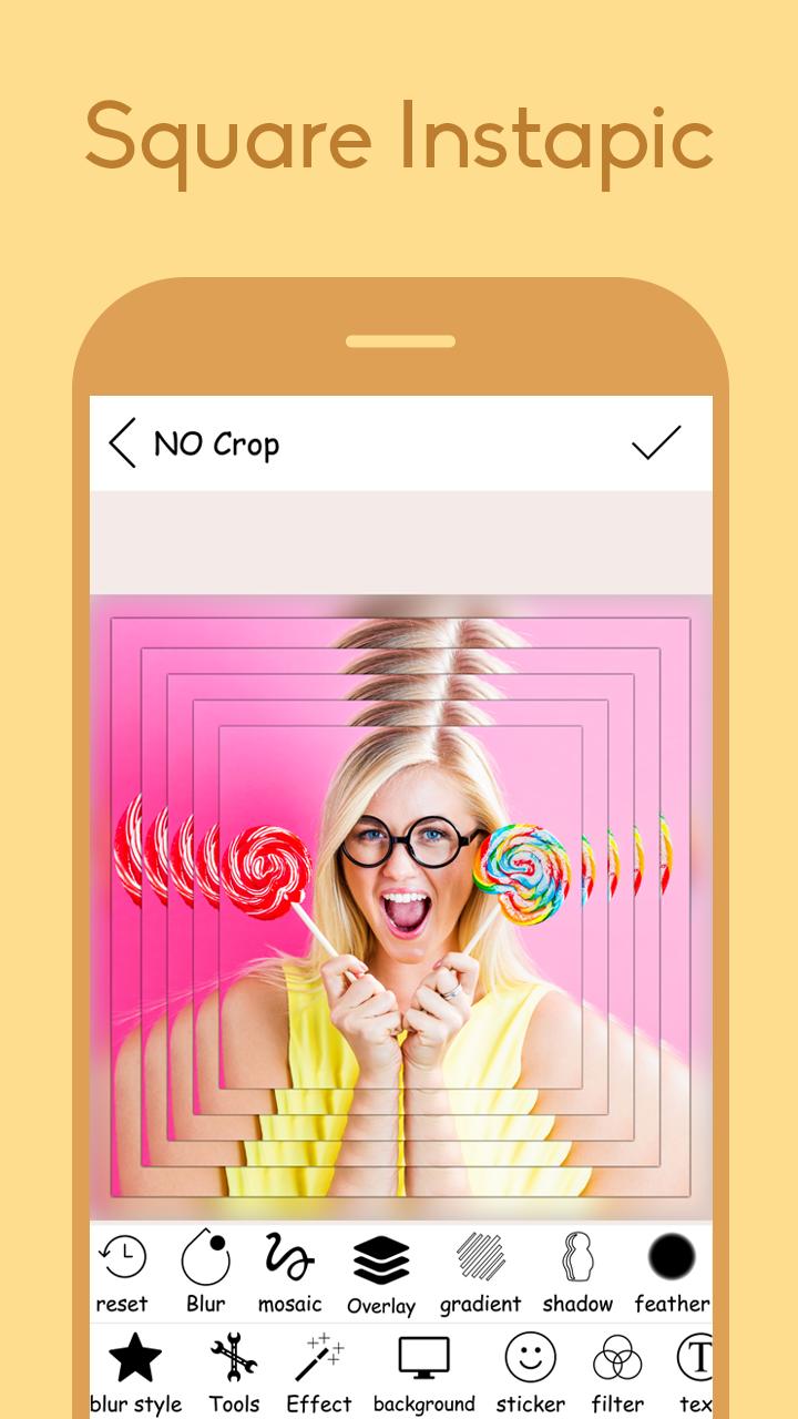 With Square Instapic - Snap Collage you can collage you pics to show moment of your life, shape image effects to show arts. With Insta square pic collage maker, you can post full size photos on Instagram with no crop, add blur, add mosaic background, shadow to emphasis you photo to be a piece of art.