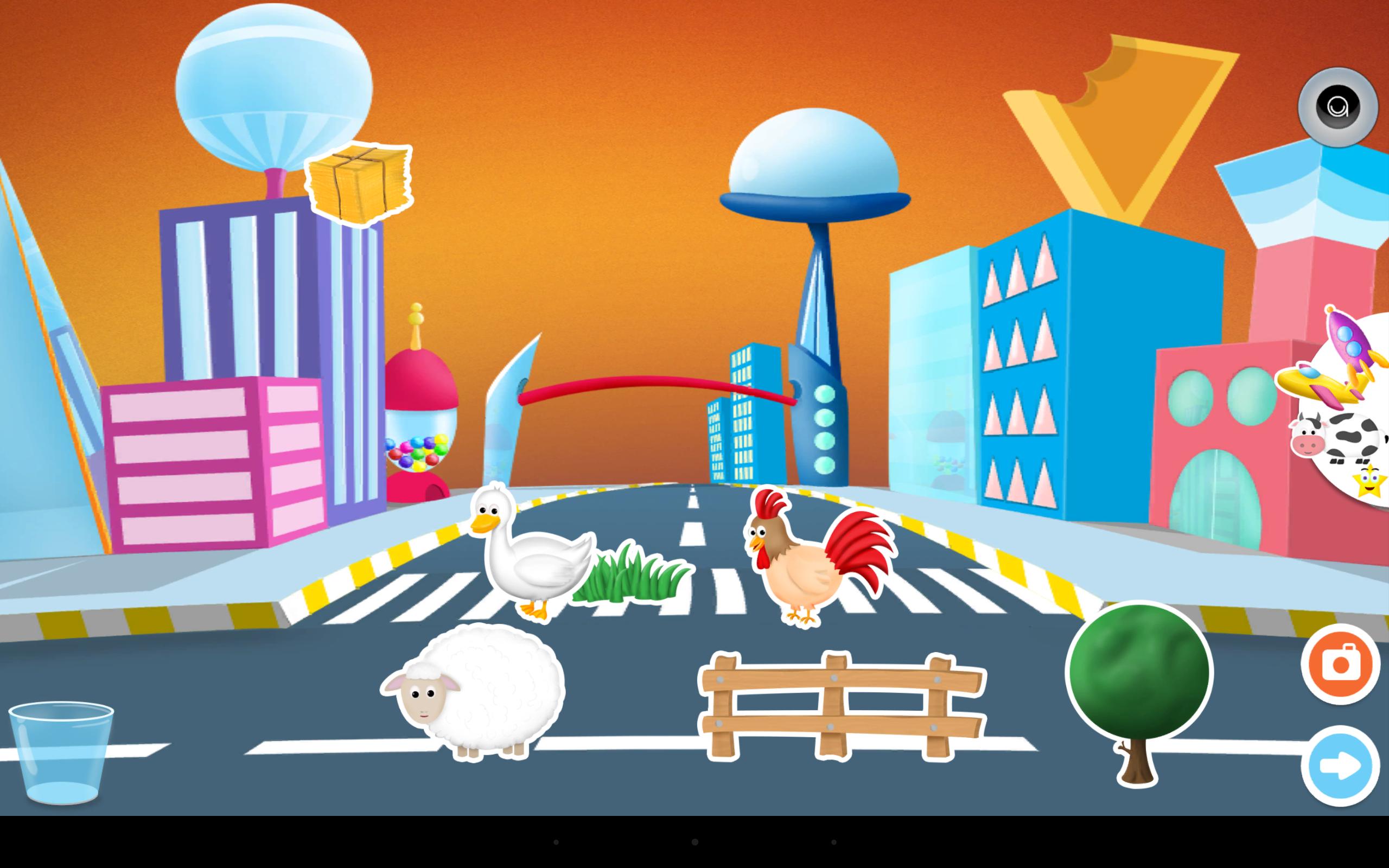 There are many different objects and characters to choose from while building your scenes, like dogs, cats, cars, airplanes and helicopters. All the objects have audio reinforcements to help your child learn their names.