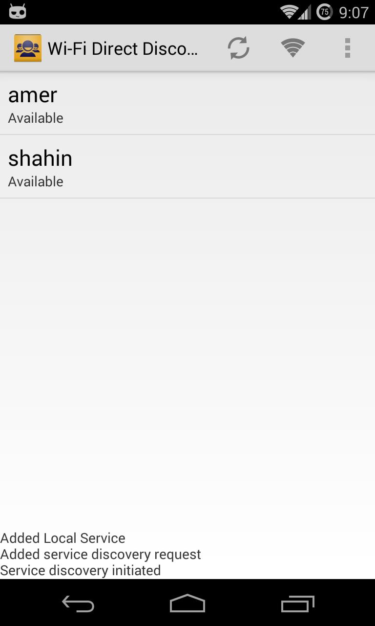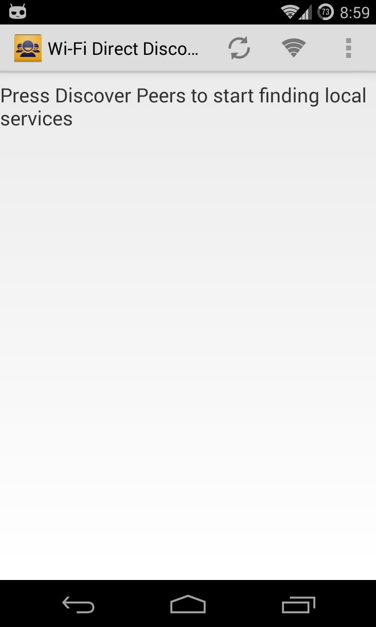 WiFi Direct Group Chat allows multiple devices to communicate (chat) together without the need for a mobile data connection or a Wi-Fi access point. All you need is to have a device with Wi-Fi Direct support, which is available in most new devices now. Android Jelly Beans is required for this app to work, as it uses p2p service discovery which is not available for earlier devices. Once you opened the app press Discover Peers and you should receive a list of current user who are running the app. Connect to one of them to form a group chat. Any subsequent connection to the group will be announced to the devices already in chat. The newly connected device, can them communicate with all the devices and they can communicate with him.