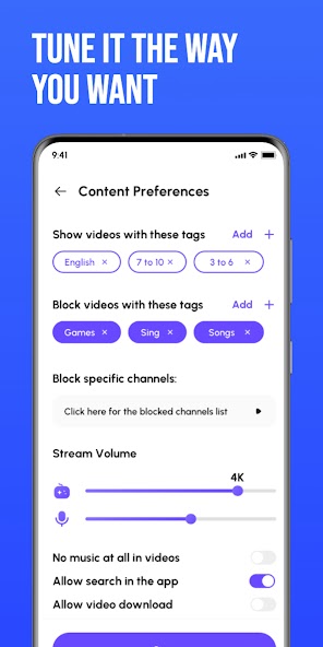 Our user-friendly interface makes it easy for kids and parents to navigate the app, search for videos, and enjoy a seamless viewing experience.