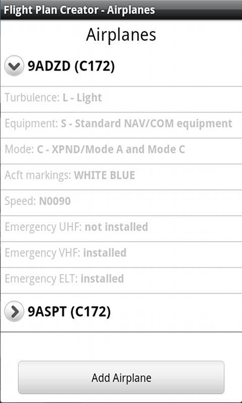 الميزة المفيدة هي إمكانية تحديد معلومات الطيار والطائرة واستخدامها أثناء عملية إنشاء خطة الطيران.
