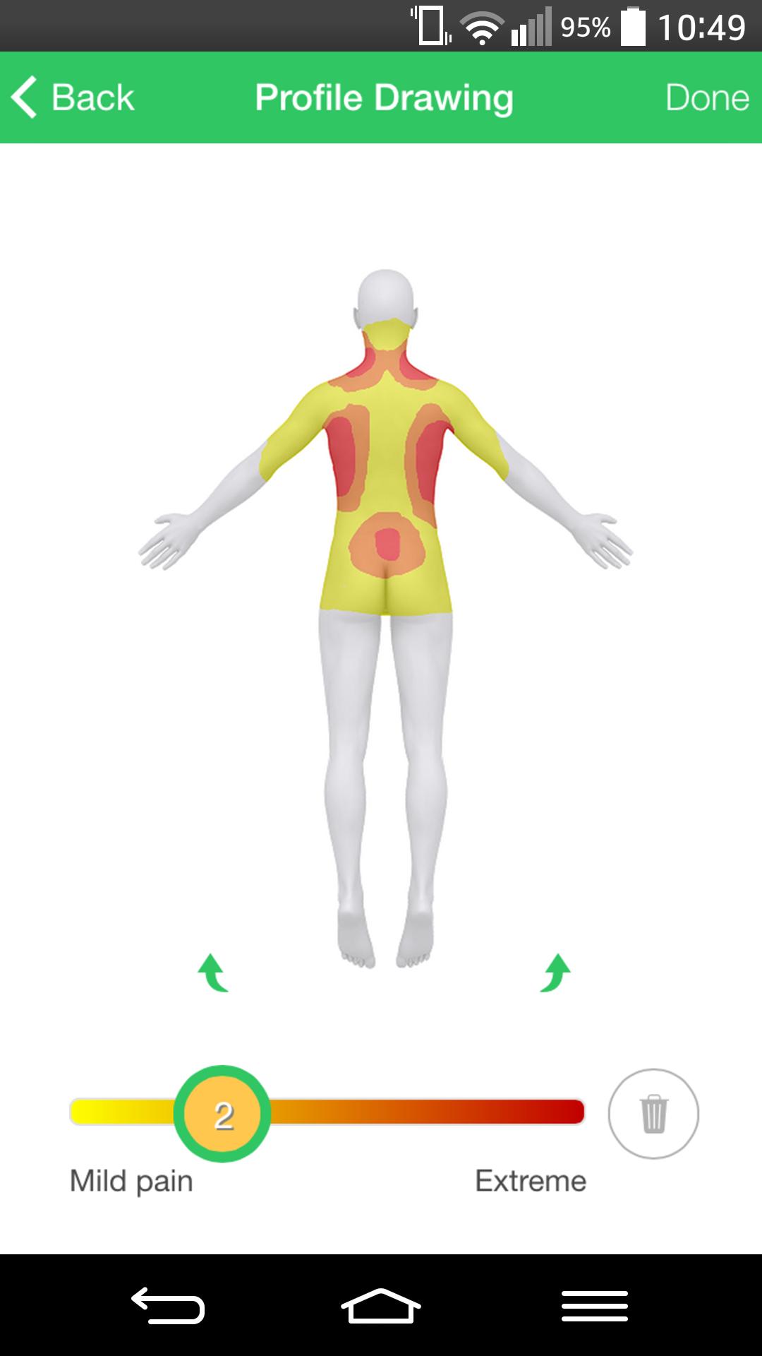 - قم بإنشاء رسومات مفصلة لألم ألوان للتعبير عن الموقع وكثافة ألمك