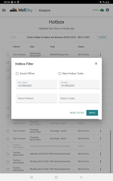 يتيح WellSky Offline لأطباء الصحة المنزلية إكمال الوثائق السريرية عندما يكونون دون وصول على الويب أو إشارة خلوية. مع WellSky Offline ، والوصول وإكمال الملاحظات السريرية الكاملة في نقطة الرعاية ، وعرض الجداول اليومية ، ومراجعة معلومات المريض كلها دون القلق بشأن الاتصال. عندما يصبح الوصول إلى الويب متاحًا ، دفع المستندات المحفوظة عبر الإنترنت إلى Wellsky Home Health and Hospice في غضون ثوانٍ. تم تصميم Wellsky حصريًا للمشتركين في برنامج Wellsky Home Health و Wellsky Home و Hospice.