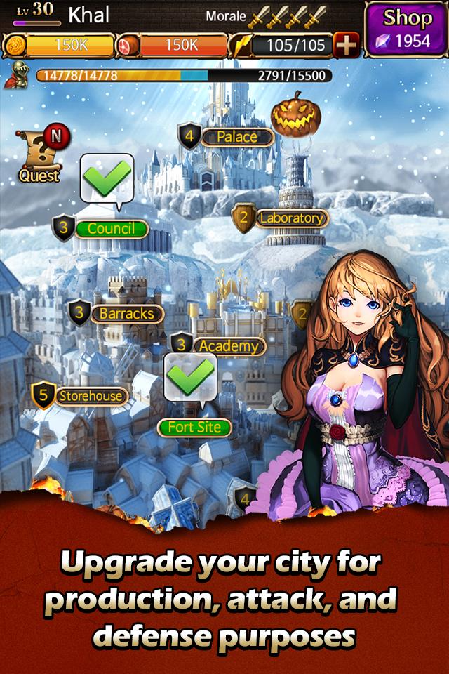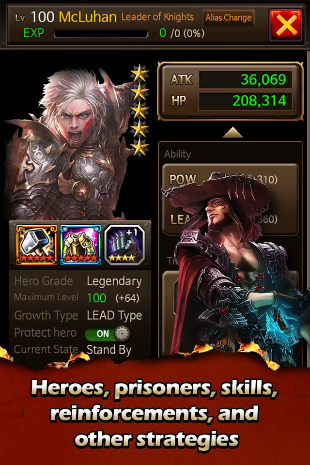 · بناء جيش قوي! جمع أكثر من 100 أبطال لإدارة موارد مملكتك والقيادة في المعركة.