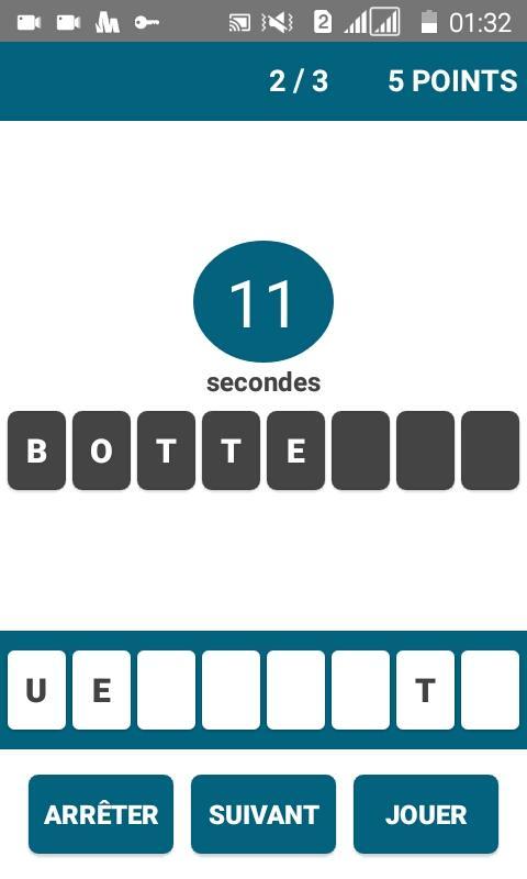 سيتعين عليك تكوين أطول كلمة ممكنة والنقر على زر "تشغيل" للتحقق من صحة الضربة.