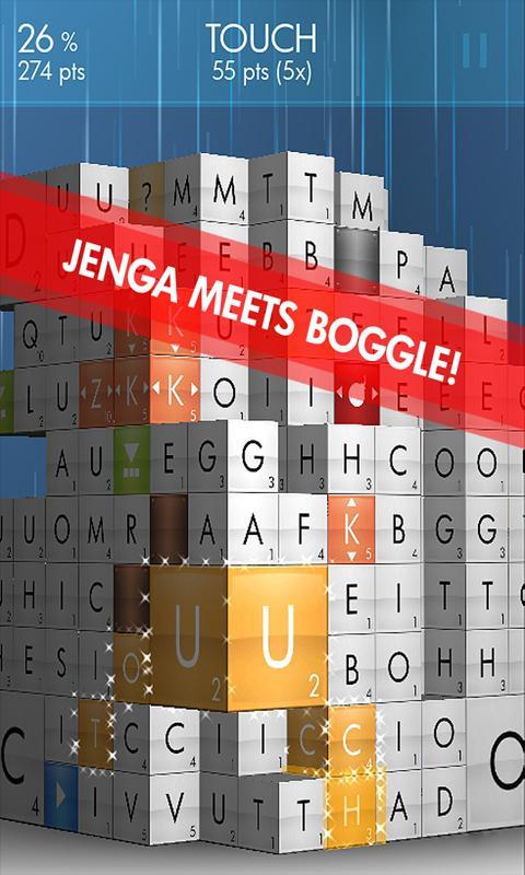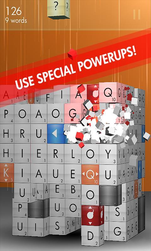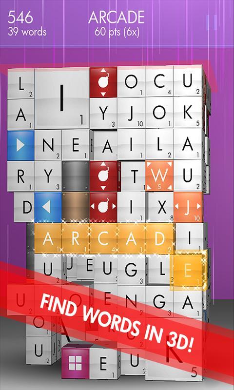 من المبدعين من المكعبات المشهود بشكل نقدي مقابل المجالات يأتي التطور التالي في ألعاب الكلمات. انقلب لتدوير حول برج من الحروف وكتل الطاقة 7 واسعة ، 7 عمق ، و 10 طول ، أثناء محاولتك العثور على كلمات لتخليص اللوحة.