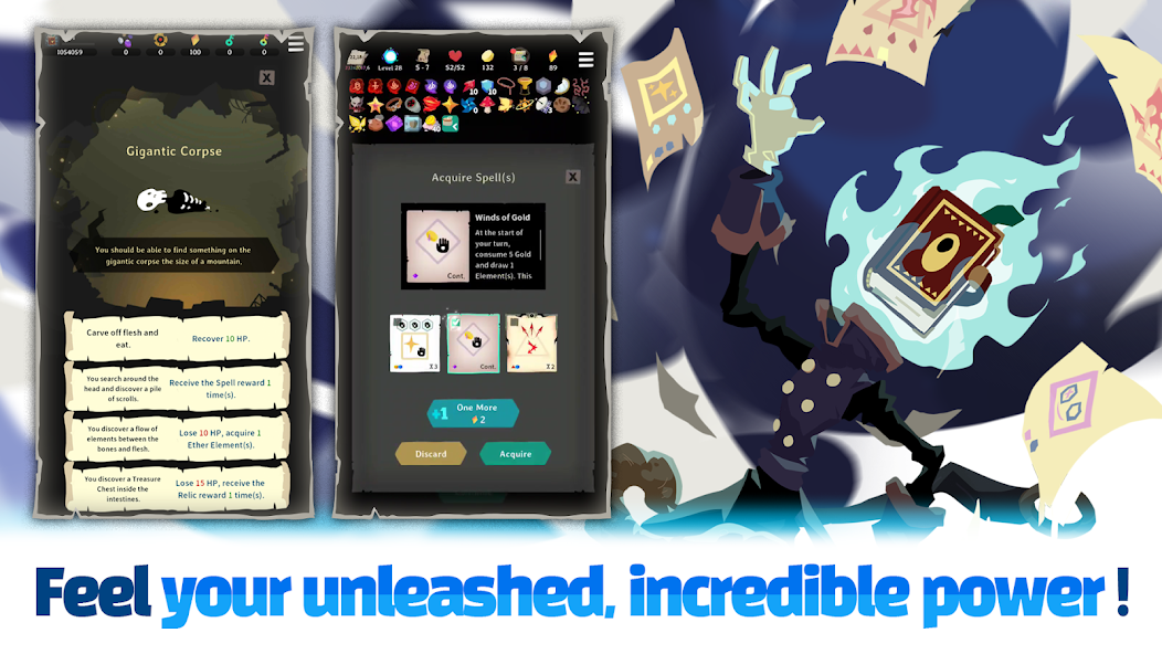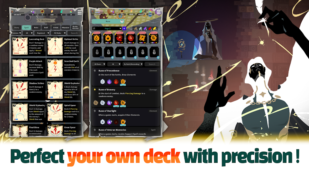في الصفحات المفقودة ، العب مع نظام Deckbuilding الأصلي الجديد والفريد تمامًا. لا يتضمن نظام Deckbuilding الأولي الذي ابتكرناه سحوبات بطاقة عشوائية ولكن بدلاً من ذلك يتطلب سحبًا عشوائيًا من الموارد (عناصر النار والماء والأرض والهواء) لاستخدام تعويذات. تم الاعتراف بهذا النهج الجديد لأصابته في مهرجان Google Indie Game ، حيث يقدم تجربة جديدة تمامًا.
