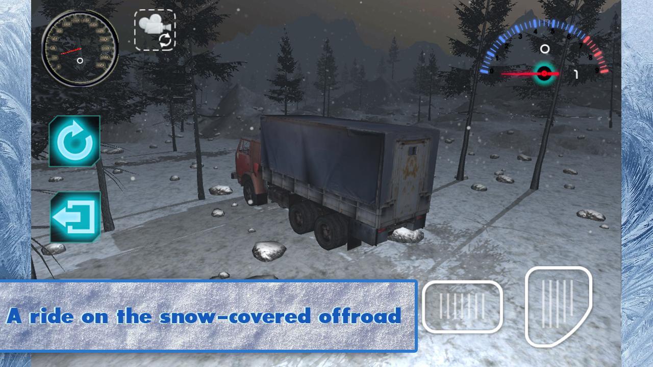خذ واحدة من سيارات الدفع الرباعي الروسية الروسة 4x4 - كاماز لتدور حول مشهد الشتاء الجميل على الطرق الوعرة.