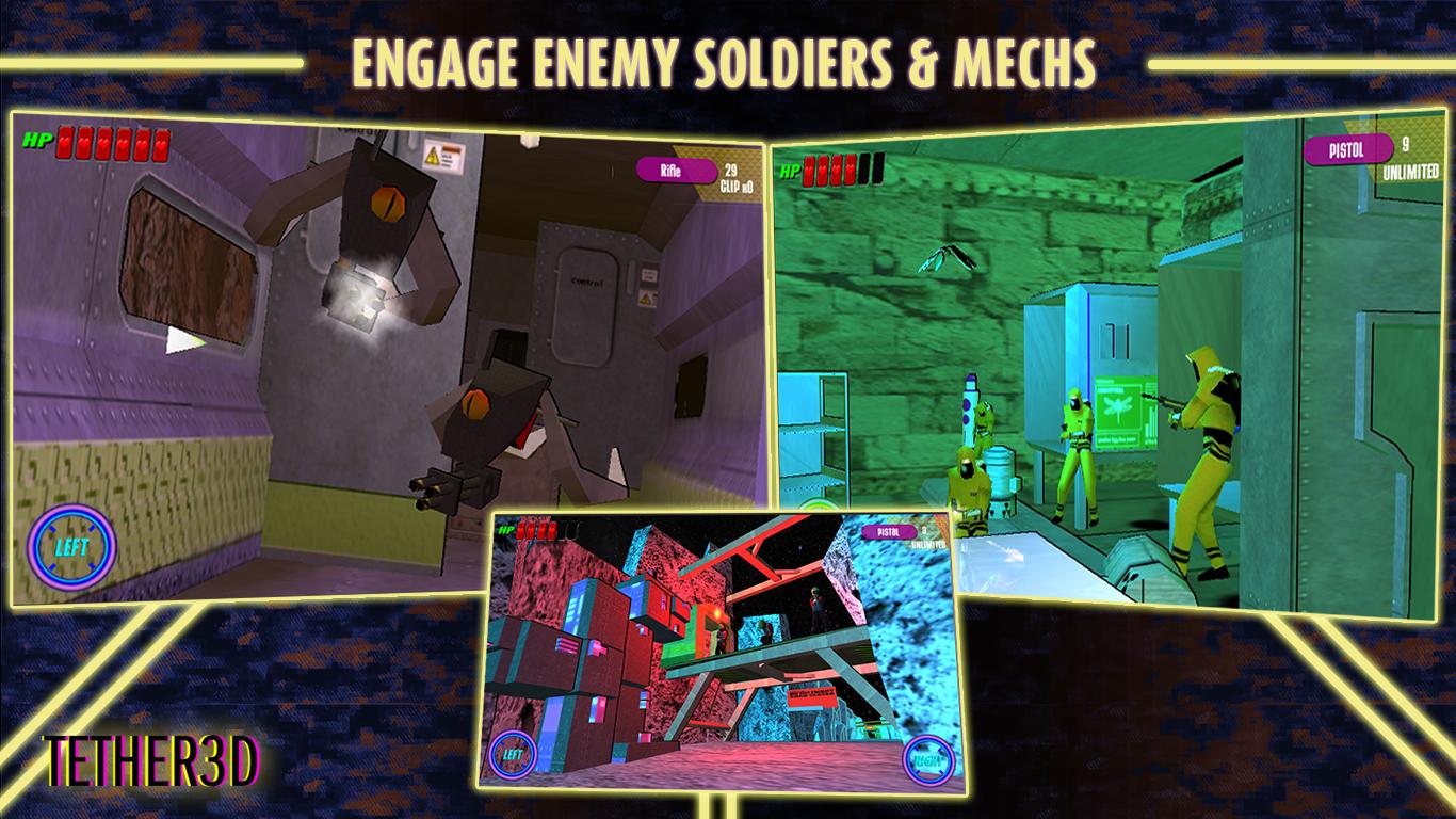 TETHER 3D هو مطلق النار متوسطة يسير الخيال العلمي مع نظام غلاف الشخص الأول. القصة هي الأساسية للعبة ، وبالتالي تعتبر TETHER 3D لعبة مغامرة أولاً ، Shooter Second.