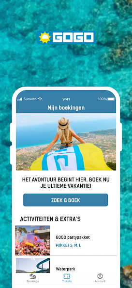 Laden Sie die GOGO -App herunter und machen Sie Ihren Urlaub noch chilliger! Alle Reiseinformationen und Tickets an Ihren Fingerspitzen. Von Flug- und Hotelinformationen bis zu den coolsten Partys, alles, was Sie in 1 App benötigen. Bereit zu feiern? Einfach Partypakete und -aktivitäten reparieren. Buchen Sie zusätzliche Koffer oder Versicherungen? Kein Problem. Laden Sie jetzt die GOGO -App herunter und finden Sie die besten und günstigsten Sommerferien. Ihr ultimativer Urlaubserlebnis beginnt hier! "