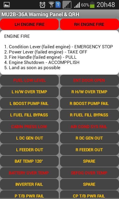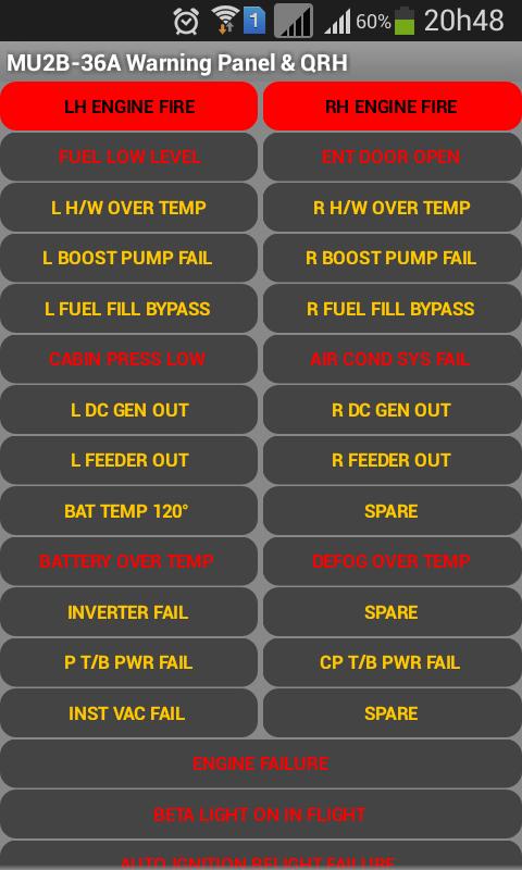 Diese App ist für das Warnpanel, die Notfälle und abnormalen Verfahren der Mitsubishi MU2B-36A siehe. Dies ist ein akademisches Projekt für Lernzwecke. Schauen Sie sich an und senden Sie die Fehler. Danke