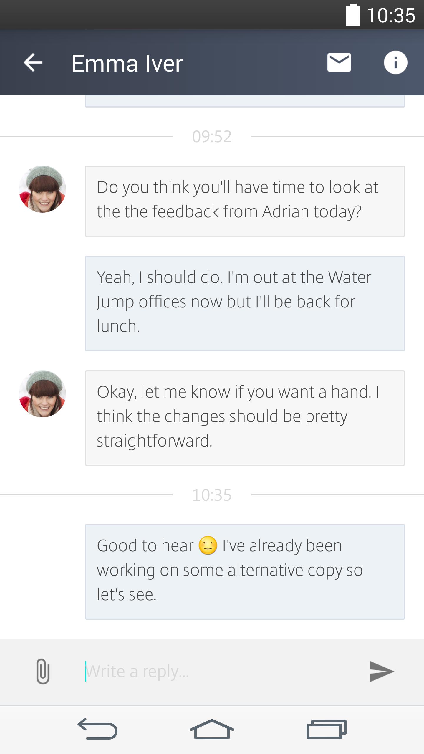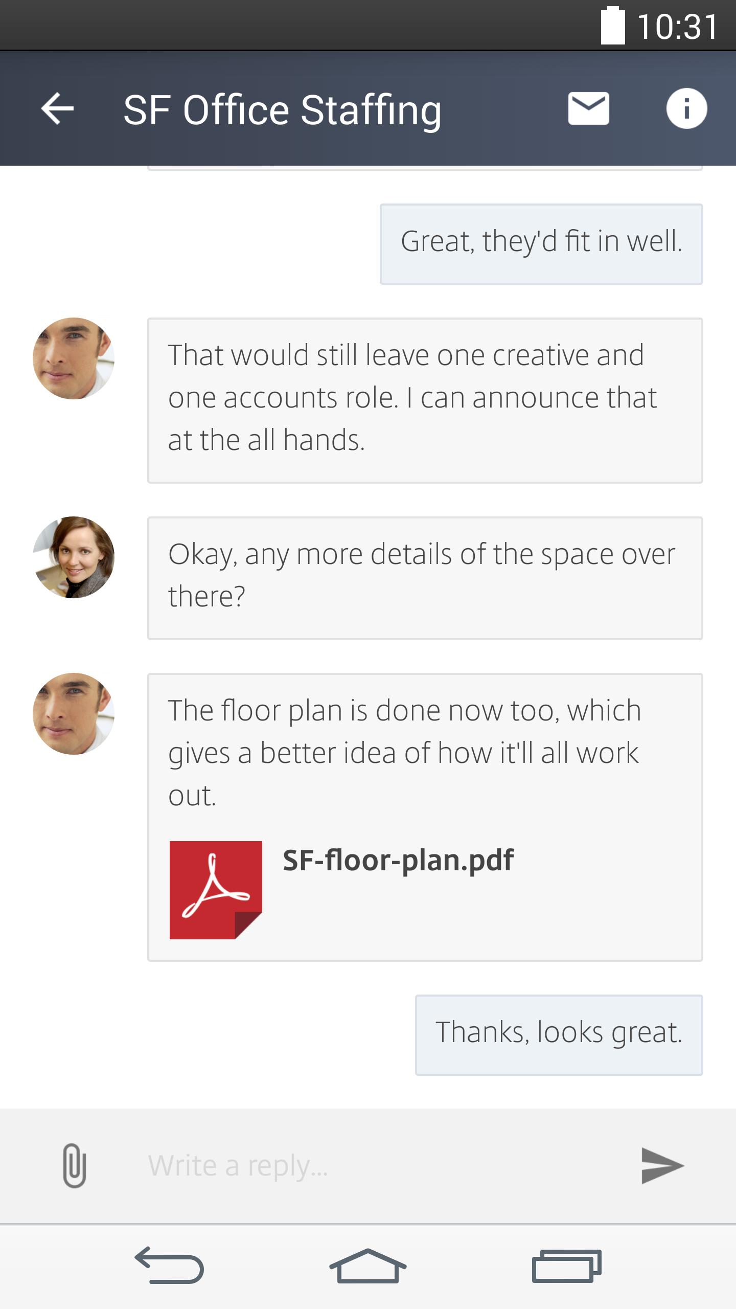 • Teilen Sie zusammen mit Text Bilder und Dateien - einschließlich Inhalte, die in Dropbox, ShareFile, Google Drive und mehr gespeichert sind.