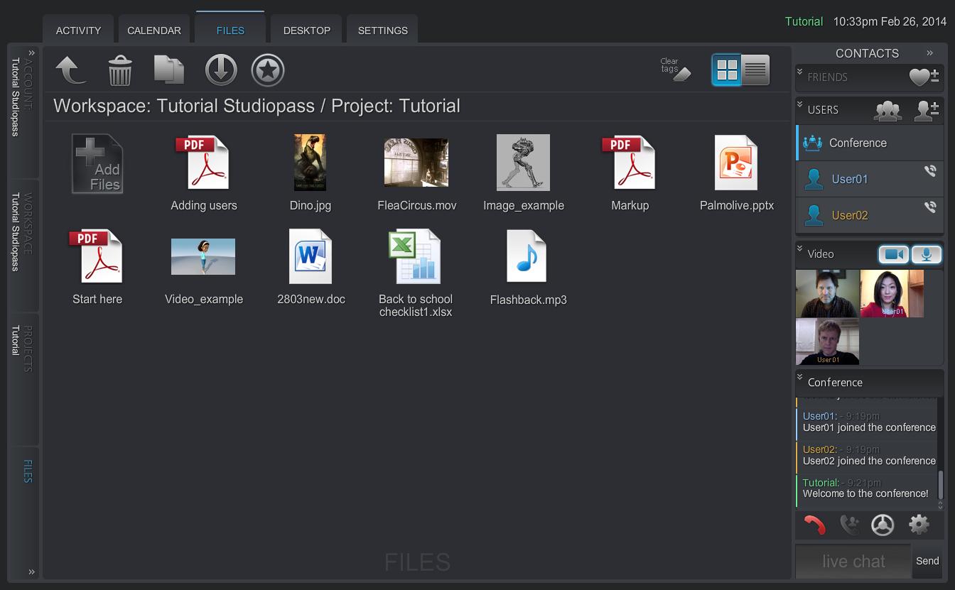 Studiopass kann auf einem Mac, einem PC oder unterwegs mit Ihrem Android -Tablet verwendet werden. Studiopass ist immer verfügbar, sodass Sie in Echtzeit oder in Ihrer Zeit zusammenarbeiten können. Kommentare und Anmerkungen können später von Kollegen erstellt und angesehen werden, die zu Ihrem Projekt eingeladen wurden. Sie können Dateien zum Überprüfen, Abrufen und Zusammenarbeit hochladen. Videokonferenz oder Text -Chat. In jedem Projekt erstellt Studiopass einen verknüpften Kalender und Gantt, um Ihre Projekte, Ereignisse und Dateien leicht zu verfolgen.