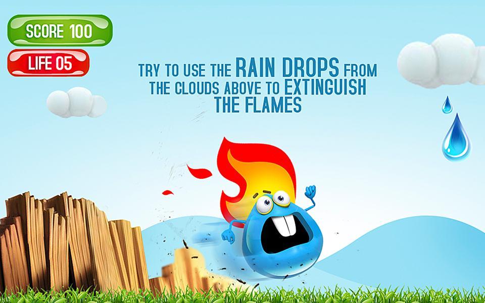 Versuchen Sie, die Regentropfen aus den oben genannten Wolken zu verwenden, um die Flammen zu löschen ...