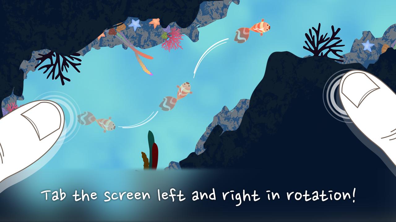 Wenn Sie nach links und rechts auf dem Bildschirm hin und her tippen, können Sie den Fisch bewegen.