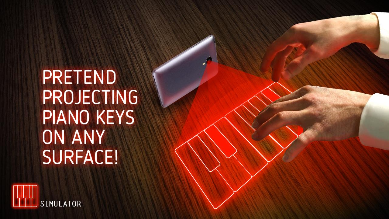 AUFMERKSAMKEIT! Hologram Piano Simulator ist ein Witz! Das Kamera -Telefon kann keine Bilder oder dreidimensionale Laserfiguren auf jeder Oberfläche projizieren! Telefon ist kein Gerät zum Generieren von Laserschlüssel für Musikinstrumente. Es ist nur ein Simulator, ein Witz!