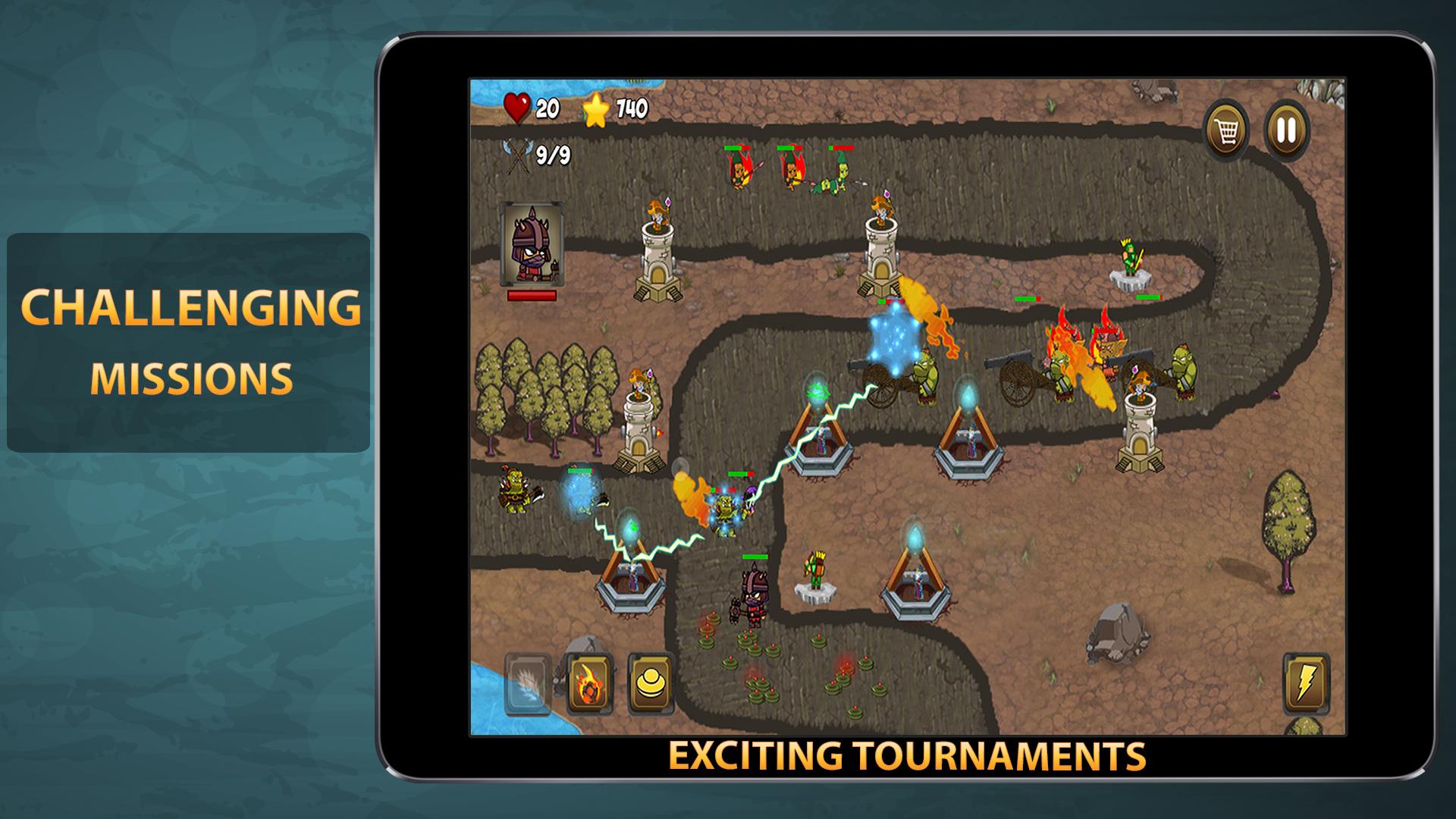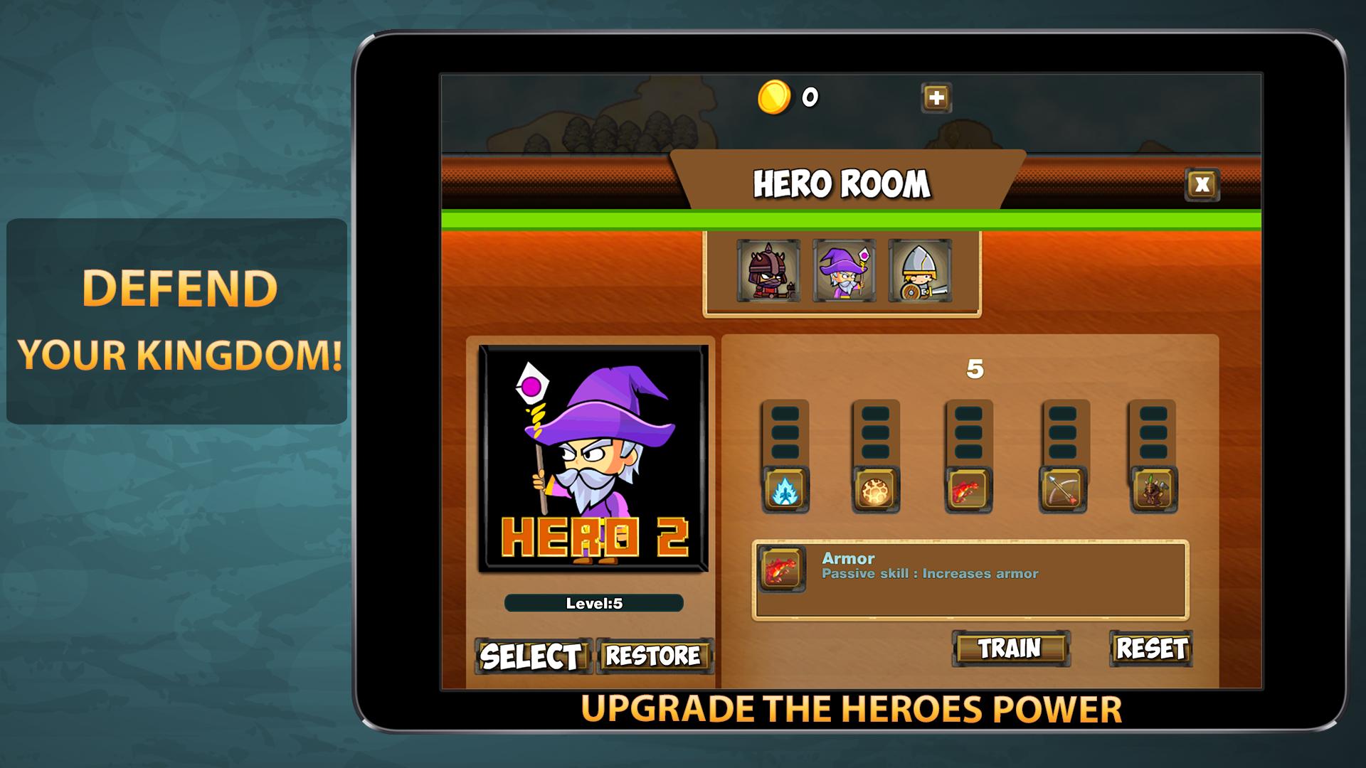 Defend the 24 regions of your territory. Protect every corner, every hiding place and secret site. Your restless hordes of enemies shall try to beat you. Accurate your strategy and keep the rhythm of every battle. Orcs, elfs, dwarfs, magicians, wise men, dragons, super powerful weapons and the power of yin-yang energy. Power up your defense towers until every attack is a fatal shoot. Train your heroes to reach the maximum level and avoid any enemy to conquer your square.