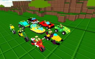 Route 99, mit 9 Strecken und 9 Fahrzeugen, mit Pixelwürfelgrafik und blockierter Starte
