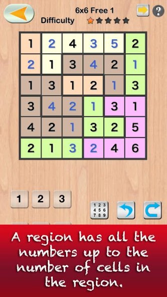 Ripple Effect ist ein logisches Puzzle mit einfachen Regeln. Das Puzzle besteht aus einer rechteckigen Platte, die in "Räume" unterteilt ist. Jedes Zimmer muss mit jeder der Zahlen von 1 zur Anzahl der Zellen im Raum gefüllt sein. Wenn zwei identische Zahlen in derselben Zeile oder Spalte erscheinen, müssen sie mindestens so viele Zellen mit anderen Zahlen trennen. Wenn beispielsweise zwei 4s in derselben Zeile erscheinen, müssen sie durch mindestens 4 Zellen getrennt werden.