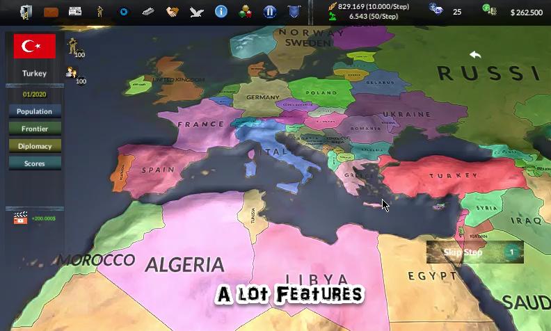 Auch für jedes Land müssen Sie sie separat kaufen. Wenn Sie das Spiel, die Strategie, Wirtschaft, Politik, Intelligenz und Kriege Ihres Landes auf Ihrer Hand haben. Sie werden alle verwalten. Der Rest der Länder wird mit künstlicher Intelligenz spielen. Seien Sie vorsichtig! Betrachten Sie Ihre Feinde nicht für unwichtig. Soldaten müssen immer anwesend sein. Sie können einen Luftangriff oder einen Meeresangriff erhalten.