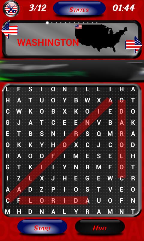 Word Search USA hilft Ihnen beim Üben und Erlernen der Liste der Staaten der USA.