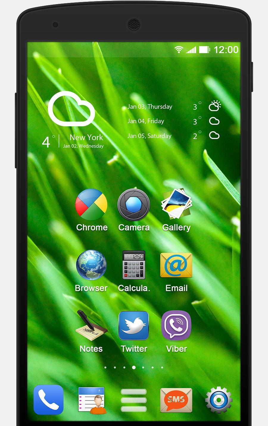 Arino es el tema de la naturaleza con hermosos íconos y con papel tapiz de hierba verde.