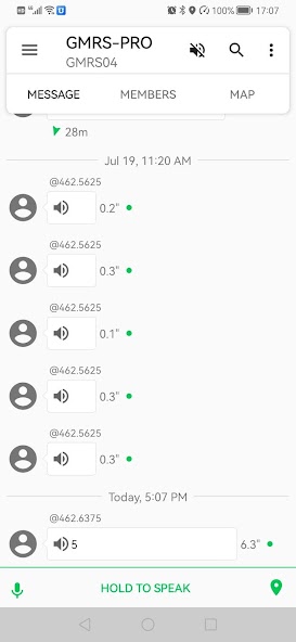 Mejore sus capacidades de comunicación enviando mensajes de texto a otros usuarios de GMRS-Pro. Para mayor seguridad y soporte comunitario, la aplicación le permite compartir su ubicación con otros usuarios en su vecindad, o solicitar la suya, particularmente útil durante las emergencias.