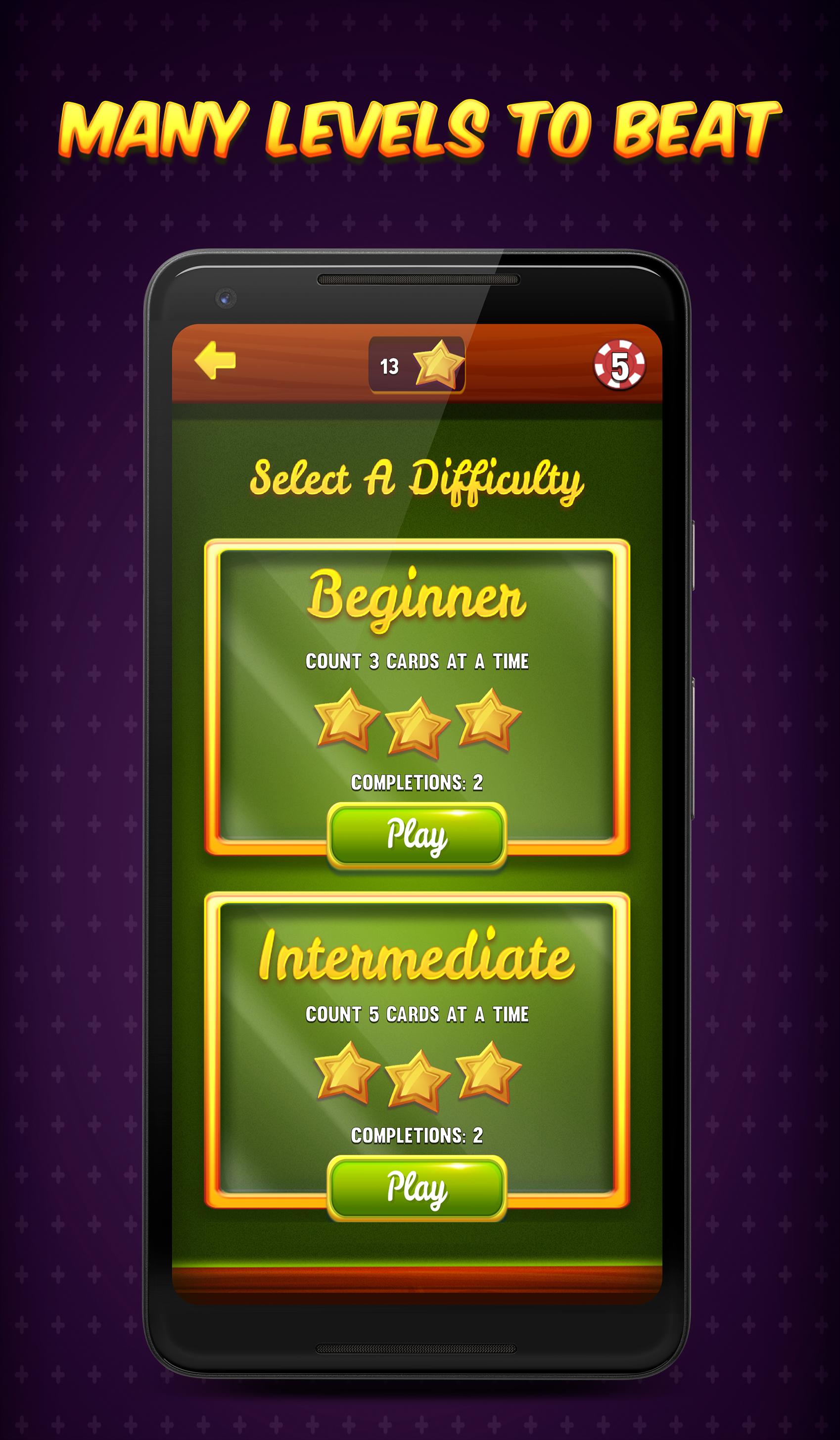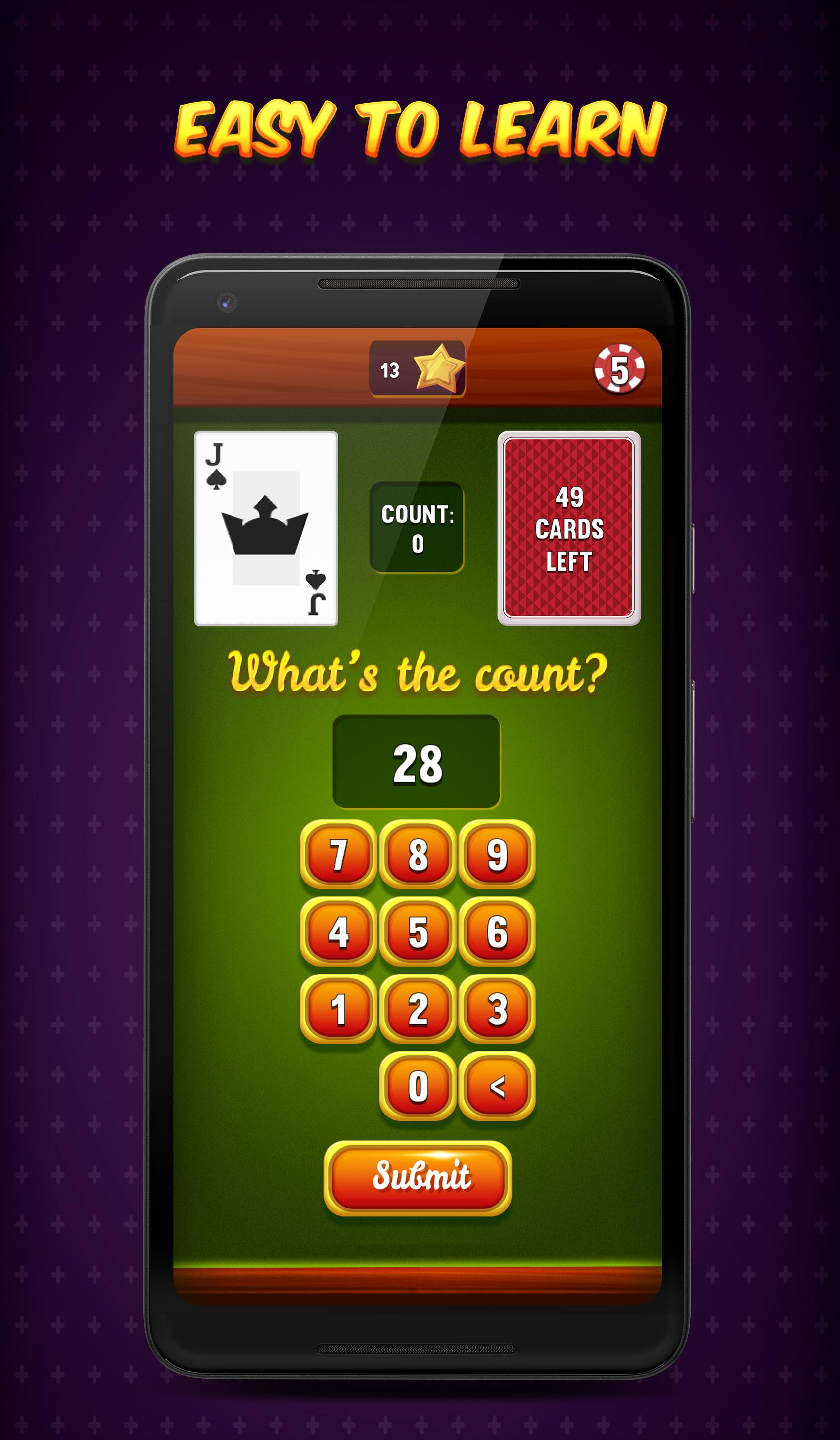 El juego incluye diferentes modos de práctica para ayudarlo a avanzar a contar el mazo completo.