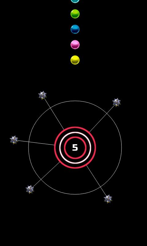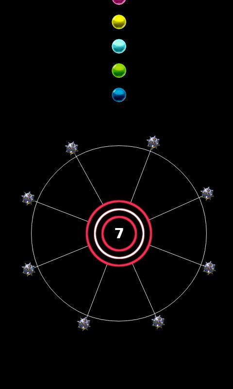 En el Circle and Dots tienes que fijar muchos puntos o bolas tanto como sea posible en la rueca. Debe evitar la colisión con la bola del pin de spin.