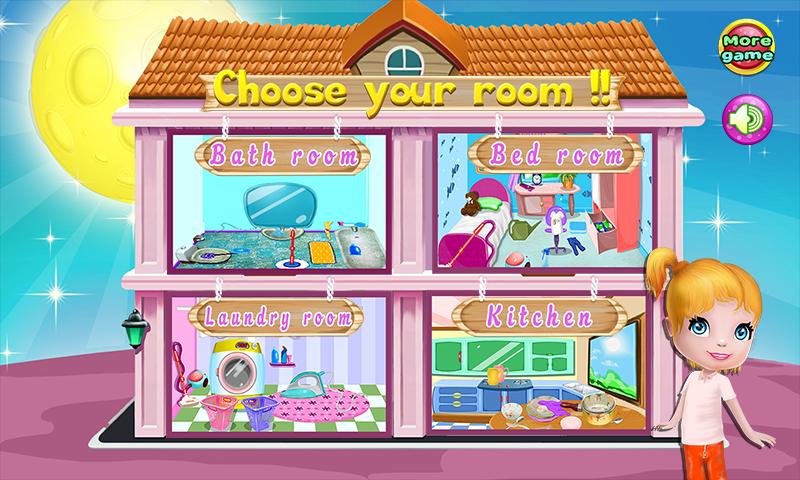14) La parte más difícil es en la cocina, debe lavar los platos, limpiar la ventana para recolectar basura y lavar las baldosas. Elija los detergentes correctos;