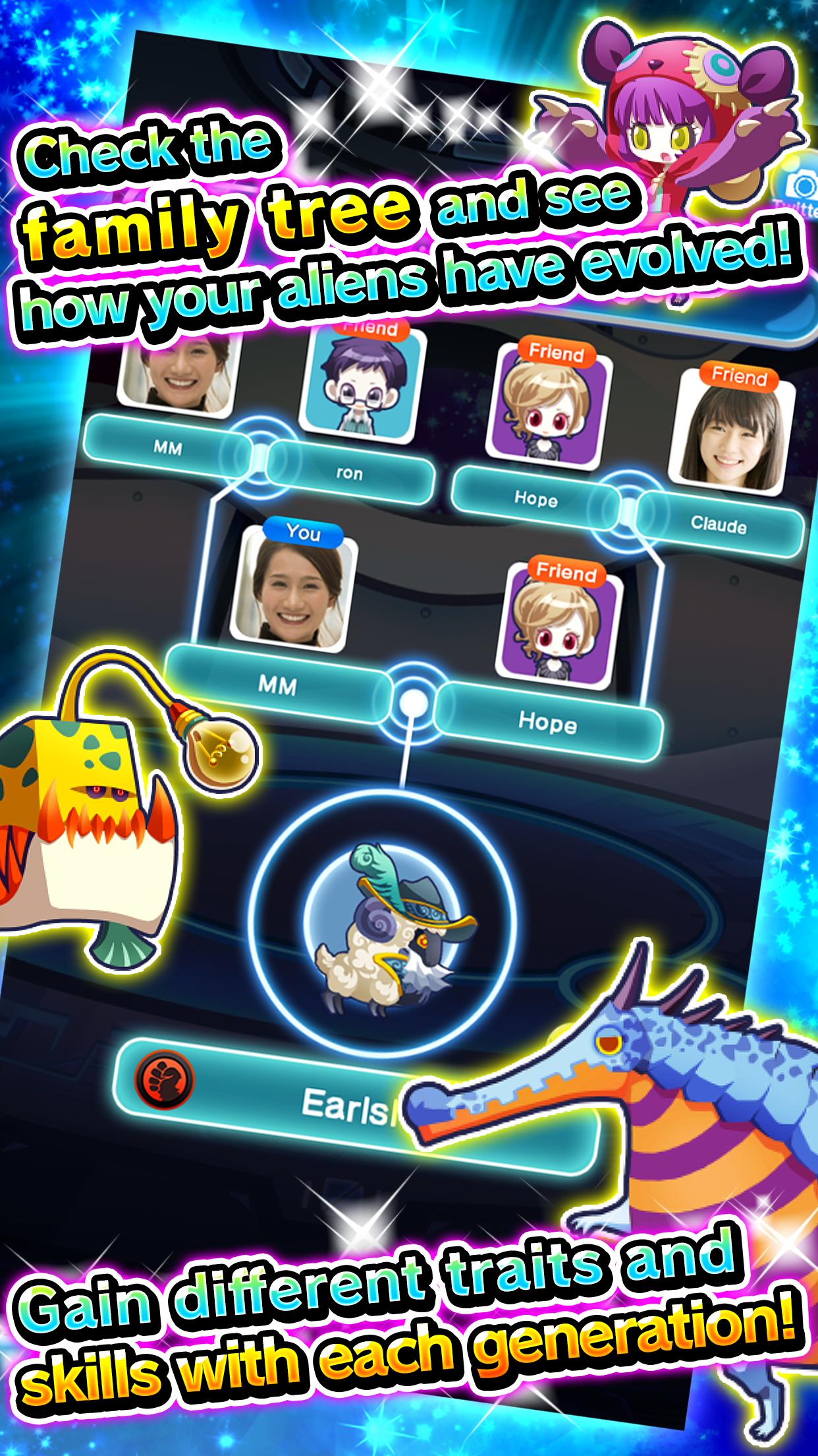 ¡Encuentra otros jugadores de todo el mundo y cría a los extraterrestres para fortalecerlos, evolucionar e incluso mutarlos!