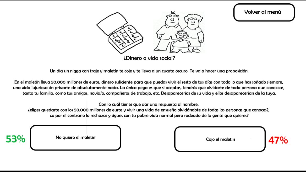 Juego de preguntas donde tendrás que tomar una decisión jodida.