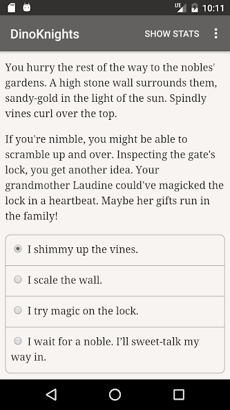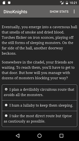 " DinoKnights " es una novela de fantasía interactiva de 177,000 palabras de KT Bryski, donde sus elecciones controlan la historia. Está completamente basado en texto, sin gráficos o efectos de sonido, y alimentado por la vasta e imparable poder de su imaginación.
