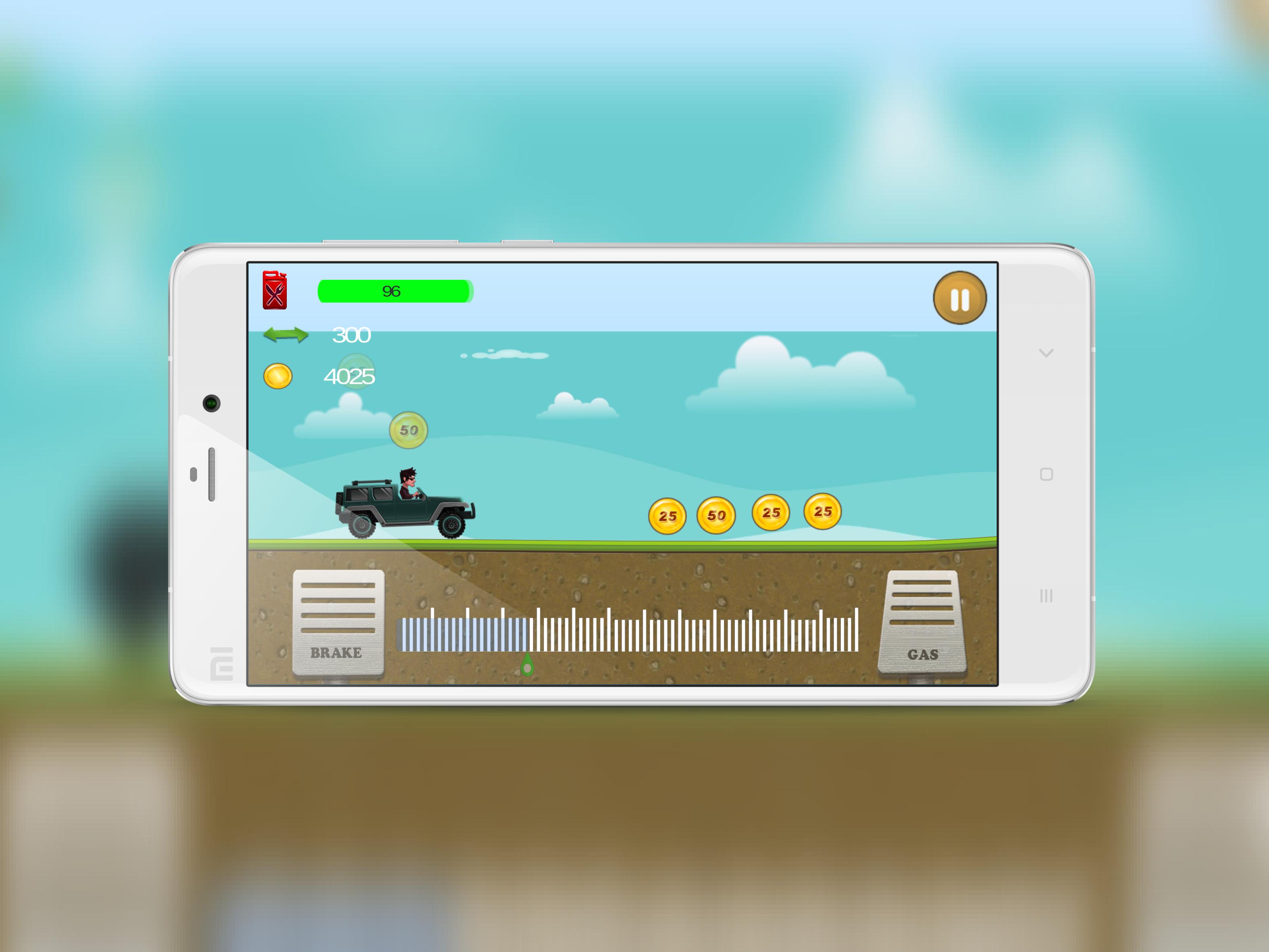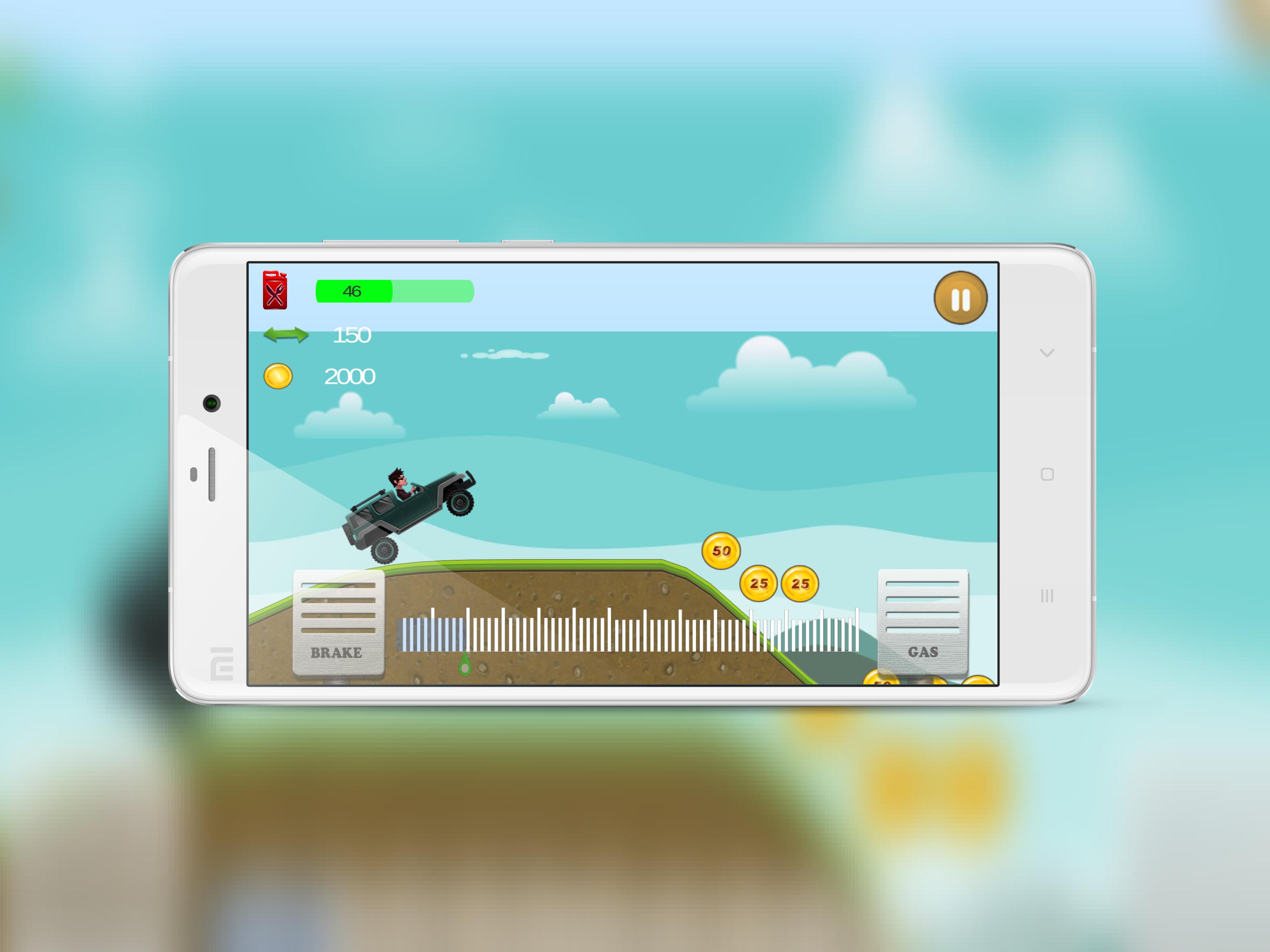 Controle su automóvil o bicicleta para escalar colinas para enfrentar los desafíos de entornos únicos cuesta arriba y cuesta abajo. Obtenga bonos de trucos y recolecte monedas para mejorar su automóvil y alcanzar distancias aún más altas.