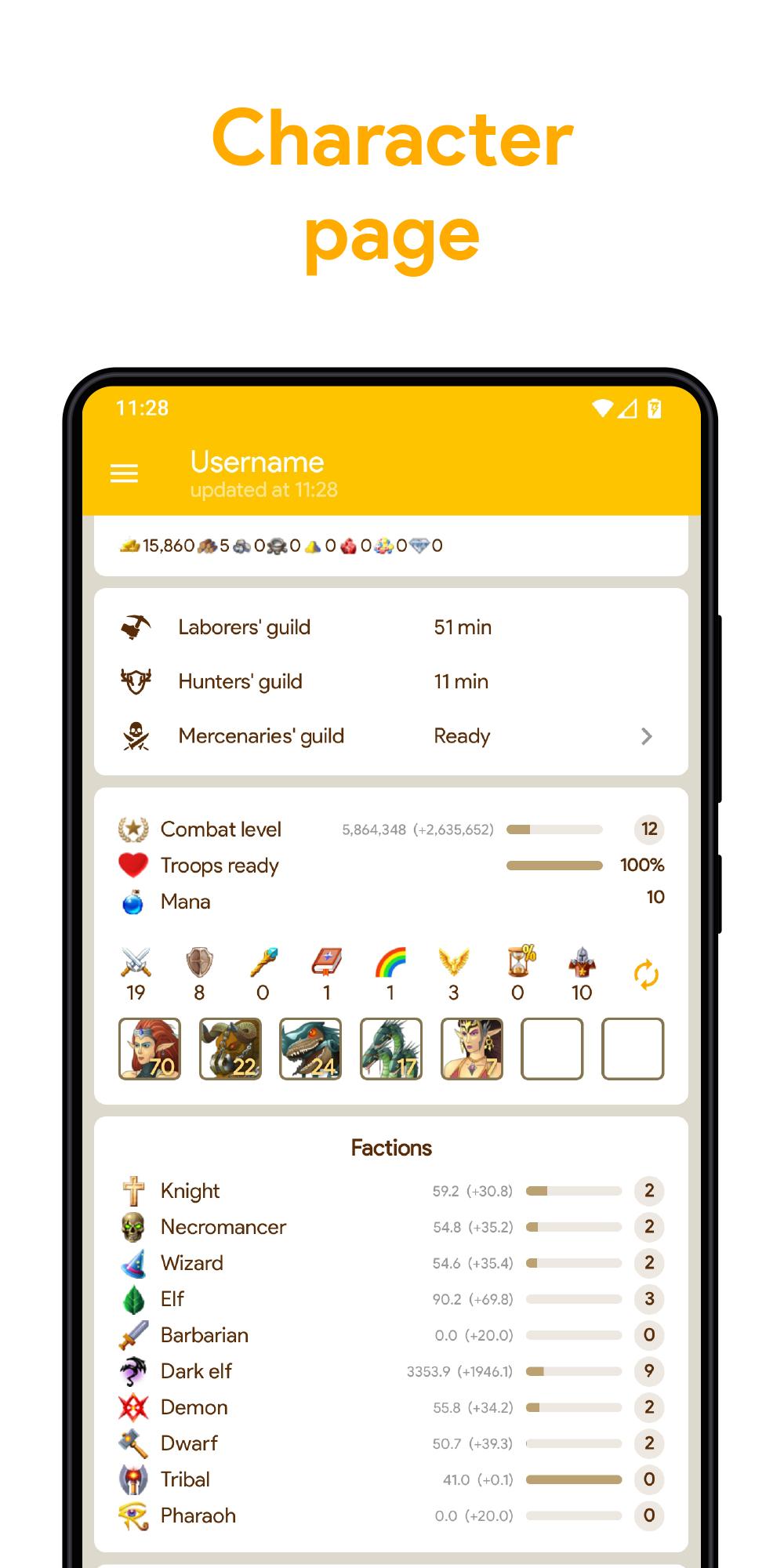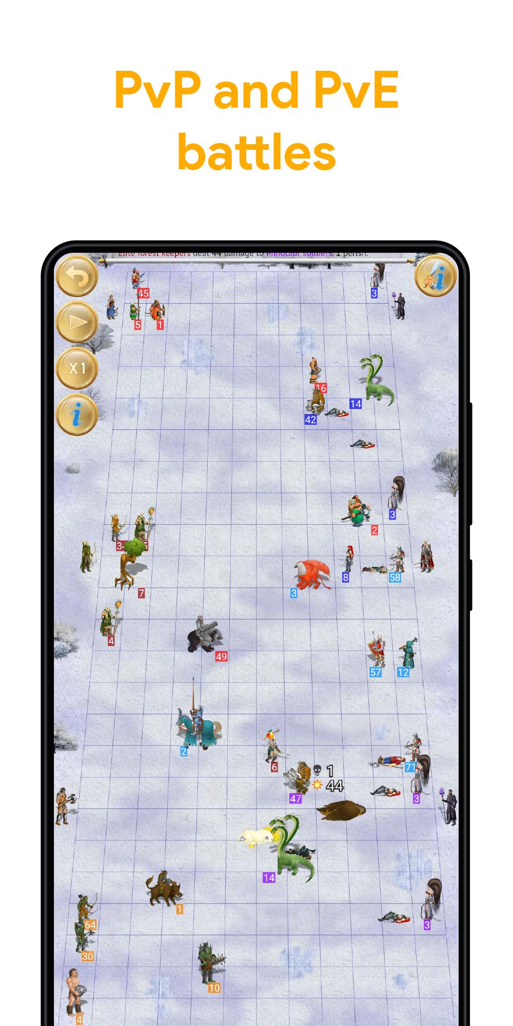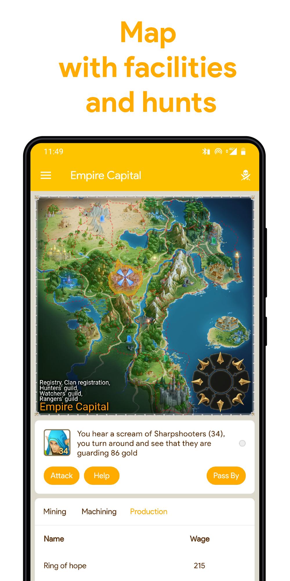 Ahora hay batallas grupales (PVP), Hunts (PVE), Mini-Game "Two Towers" (PvP). También hay Guild Guild y Mercenarios Mercenarios, mercado, mapa, correo, inventario, tienda de artefactos, reclutamiento, castillo, habilidades y un par de otras pantallas.