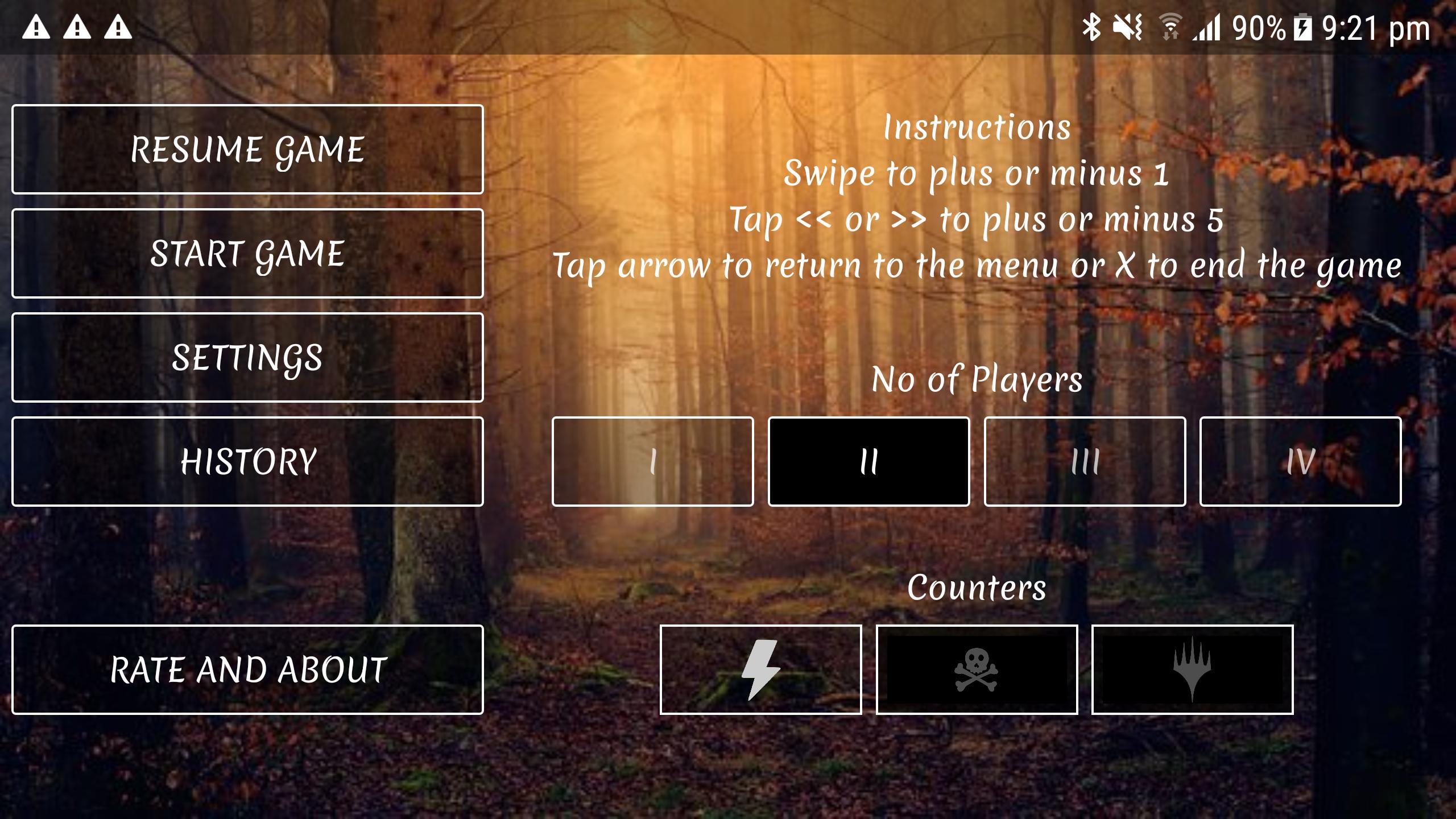 Esta aplicación es capaz de mantener la cuenta de los niveles de veneno y energía, así como tres planeswalker / mostradores adicionales. También cuenta con una práctica opción de flip de moneda.