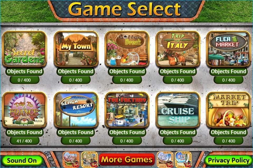 10 juegos de objetos ocultos en un paquete = 100 niveles y 4000 objetos ocultos para encontrar