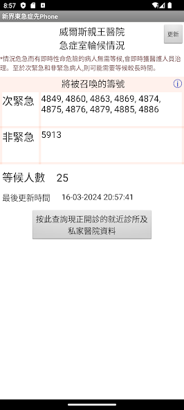 PWH AE AID est étendu à NTEC AE Aid . Les utilisateurs peuvent récupérer les services, le système de triage de l'accident et des urgences et le statut d'attente actuel dans les nouveaux territoires East Cluster (Prince of Wales Hospital, Alice Ho Miu Ling Nethersole Hospital et North District Hospital). De plus, les utilisateurs peuvent rechercher les coordonnées des cliniques voisines qui sont désormais en service. Les patients et le public peuvent faire référence dans le choix des canaux de consultation appropriés.