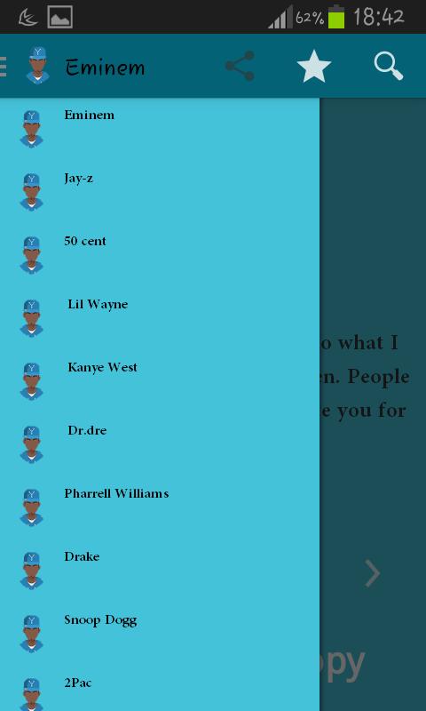 The Rap Quotes brings you on a platter the best Quotes of your favorite rappers. found all the great figures of US rap in a single application!