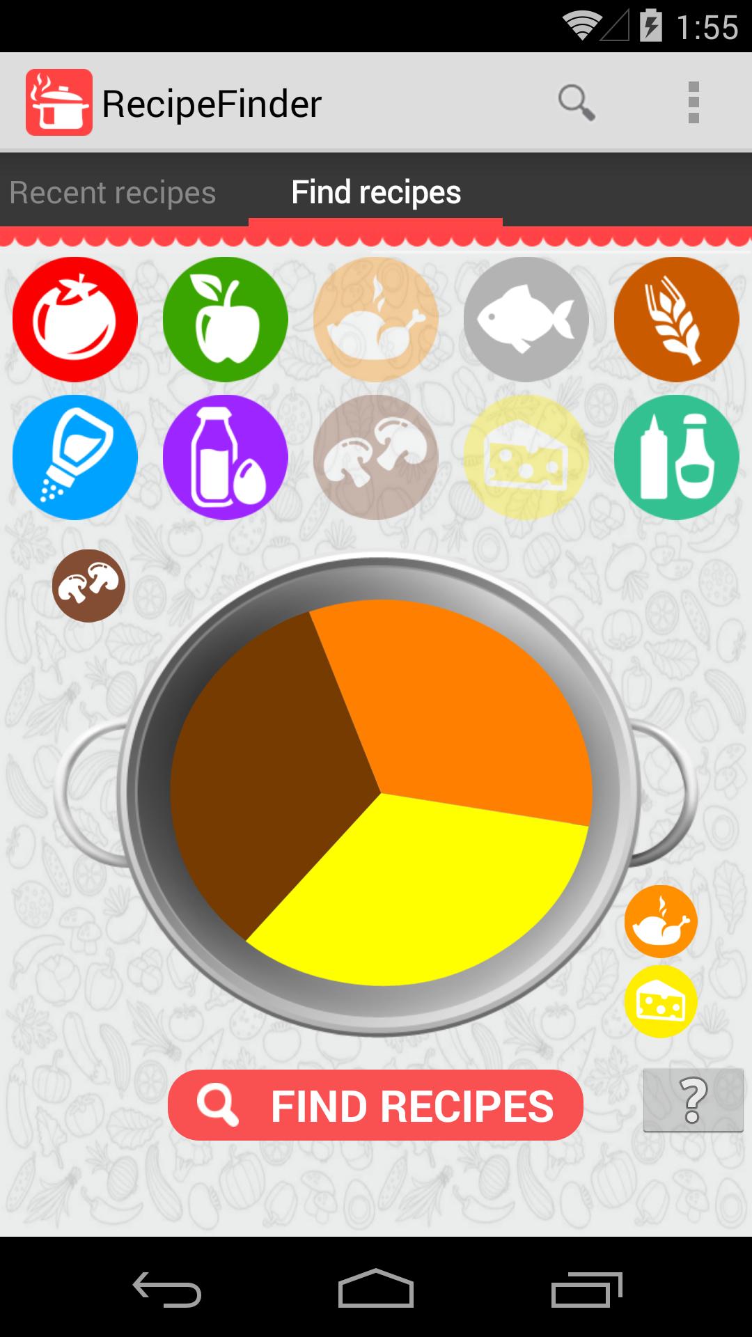 Vous avez essayé beaucoup de programmes? Vous cherchez une recherche d'ingrédients que vous avez déjà dans votre réfrigérateur? Installez RecepeFinder et ressentez la simplicité et la facilité de la recherche.