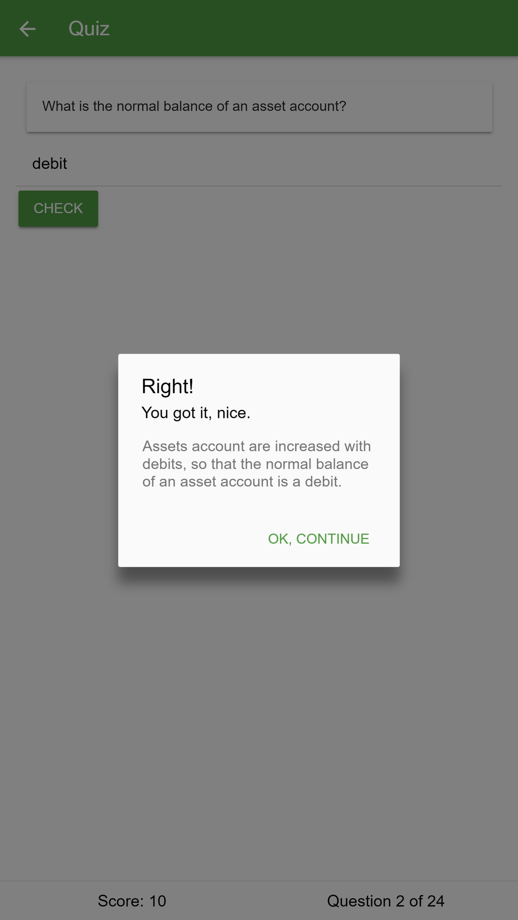 ACCQUIZ a été développé par des comptables professionnels et a été vérifié pour l'exactitude. Il convient aux débutants totaux qui souhaitent avoir un aperçu de la comptabilité, ou pour ceux qui souhaitent actualiser les bases avant d'étudier pour l'examen CPA.