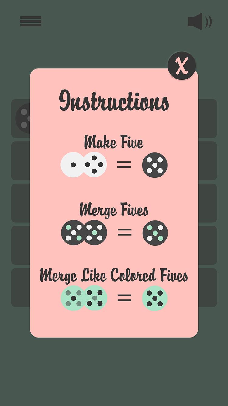 Les points sont partout! Votre objectif est de connecter les points - faire 5s - fusionner 5s. Remplissez les disques sombres de couleur et whoa - l'esprit soufflé! Plus vous fusionnez 5s, plus vous créez de couleurs! Si vous êtes un fan de 2048, 1010 ou trois, vous adorerez ce nouveau puzzler. Color Me Five est le nouveau jeu de puzzle de correspondance de tuiles avec une torsion. Jouez-le aujourd'hui gratuitement!