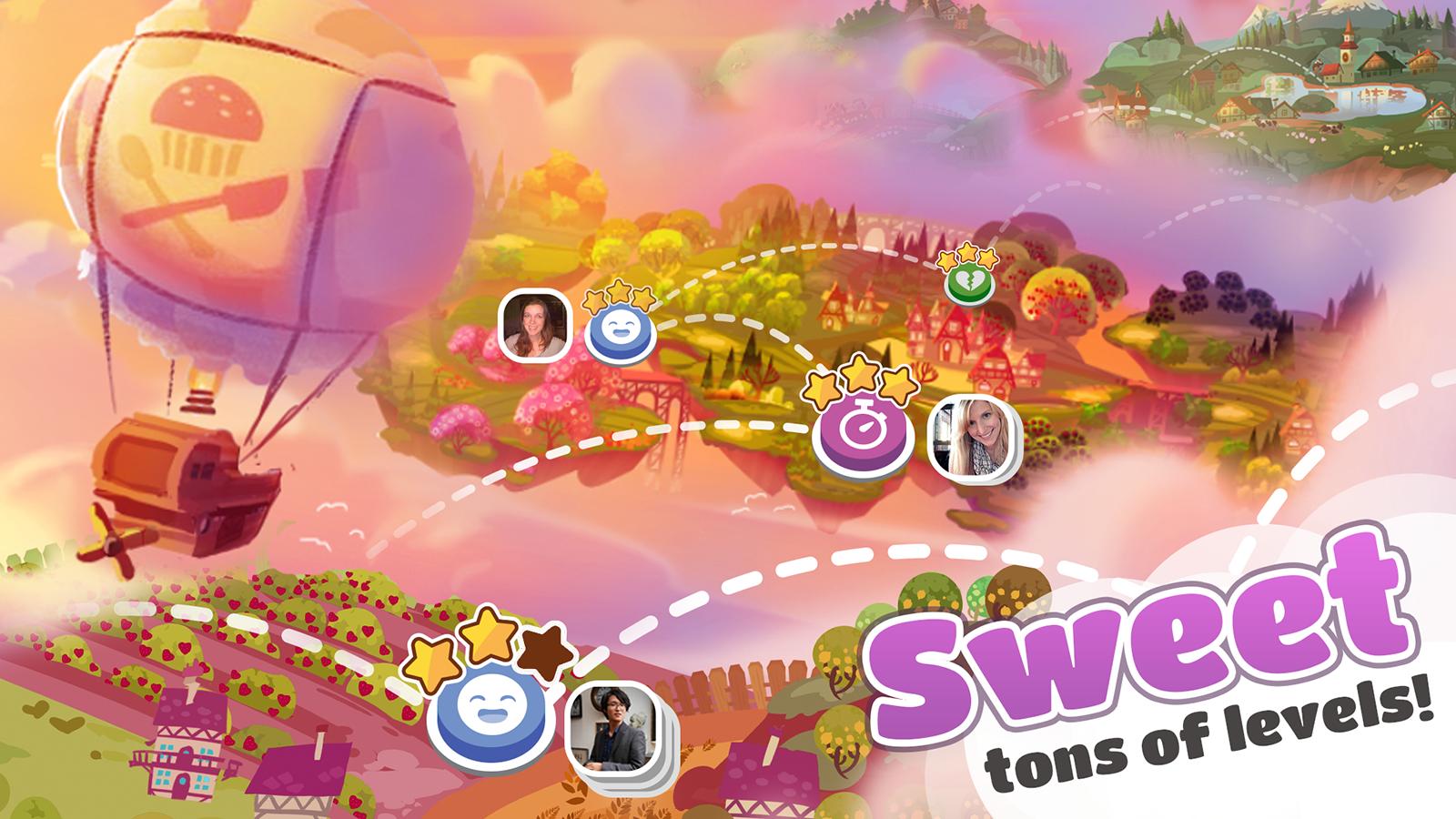 Aidez le sucre à restaurer la douceur du monde pendant que vous explorez des centaines de niveaux dans des terres fantastiques mystiques comme Lemonshine Orchard, Cherryglow Forest et Lavender Lake. Chaque terre regorge d'ingrédients frais et uniques et de nouveaux outils magiques pour votre boulangerie! Chaque niveau vous rapproche de vaincre la malédiction maléfique de la baronne von Bitter!