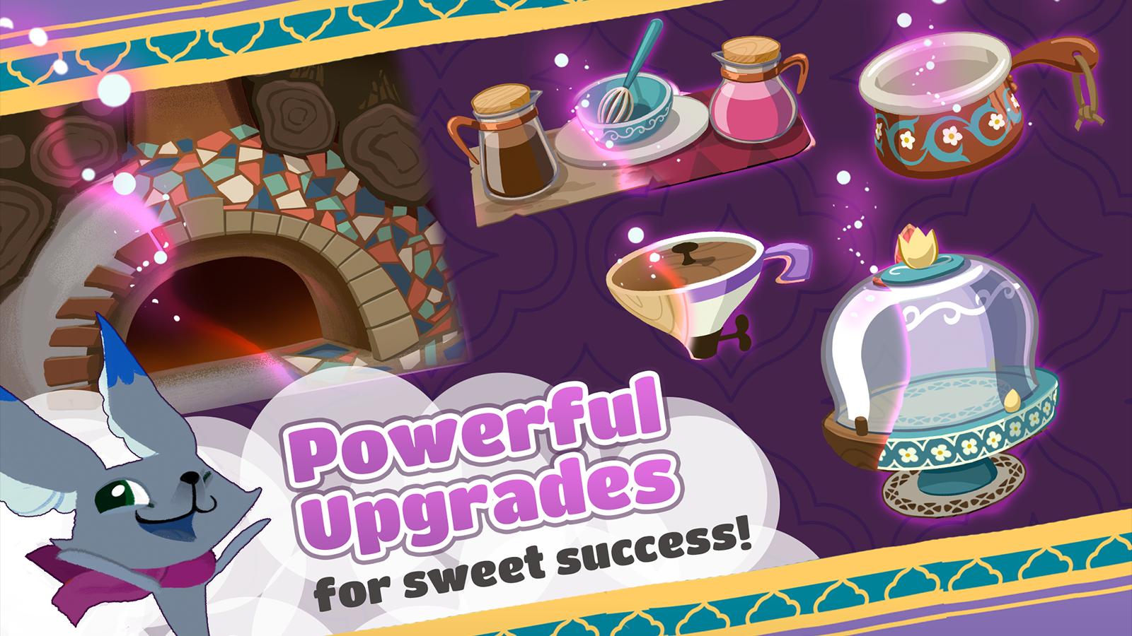 Les ingrédients et les stations améliorés font de votre boulangerie une machine bien huilée et vous aide à suivre la demande scandaleuse pour vos succulents bonbons. Obtenez 3 étoiles pour gagner du carburant supplémentaire pour voyager dans des terres lointaines!