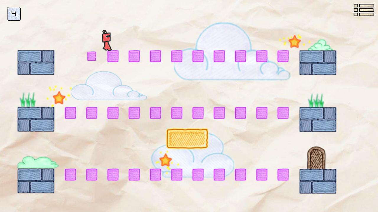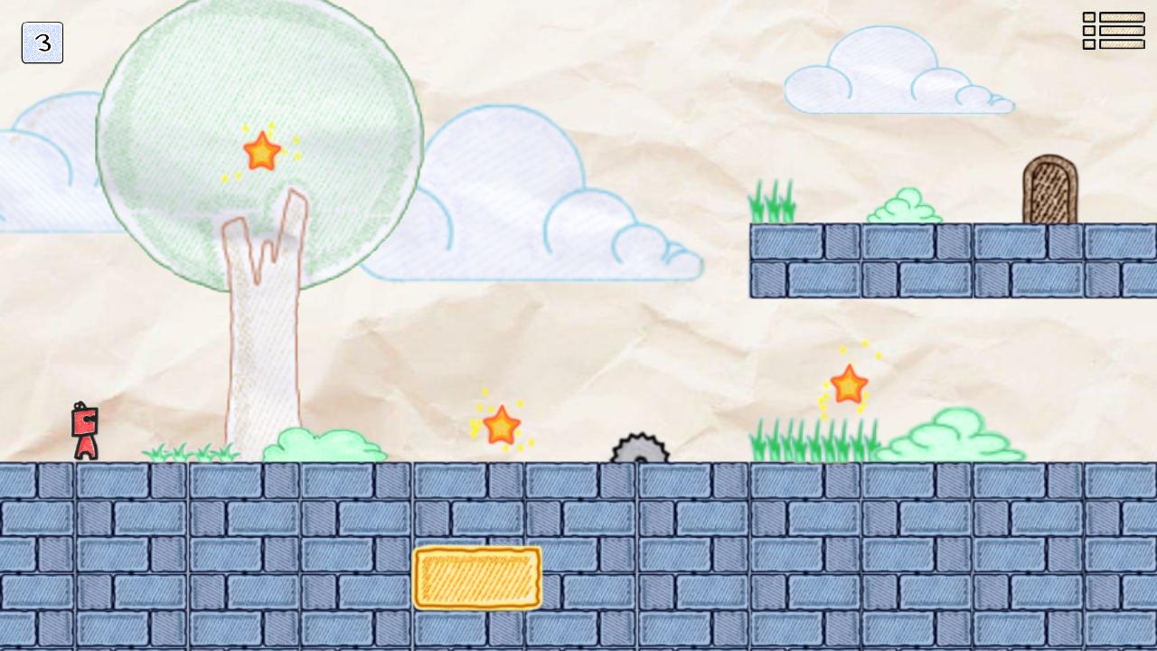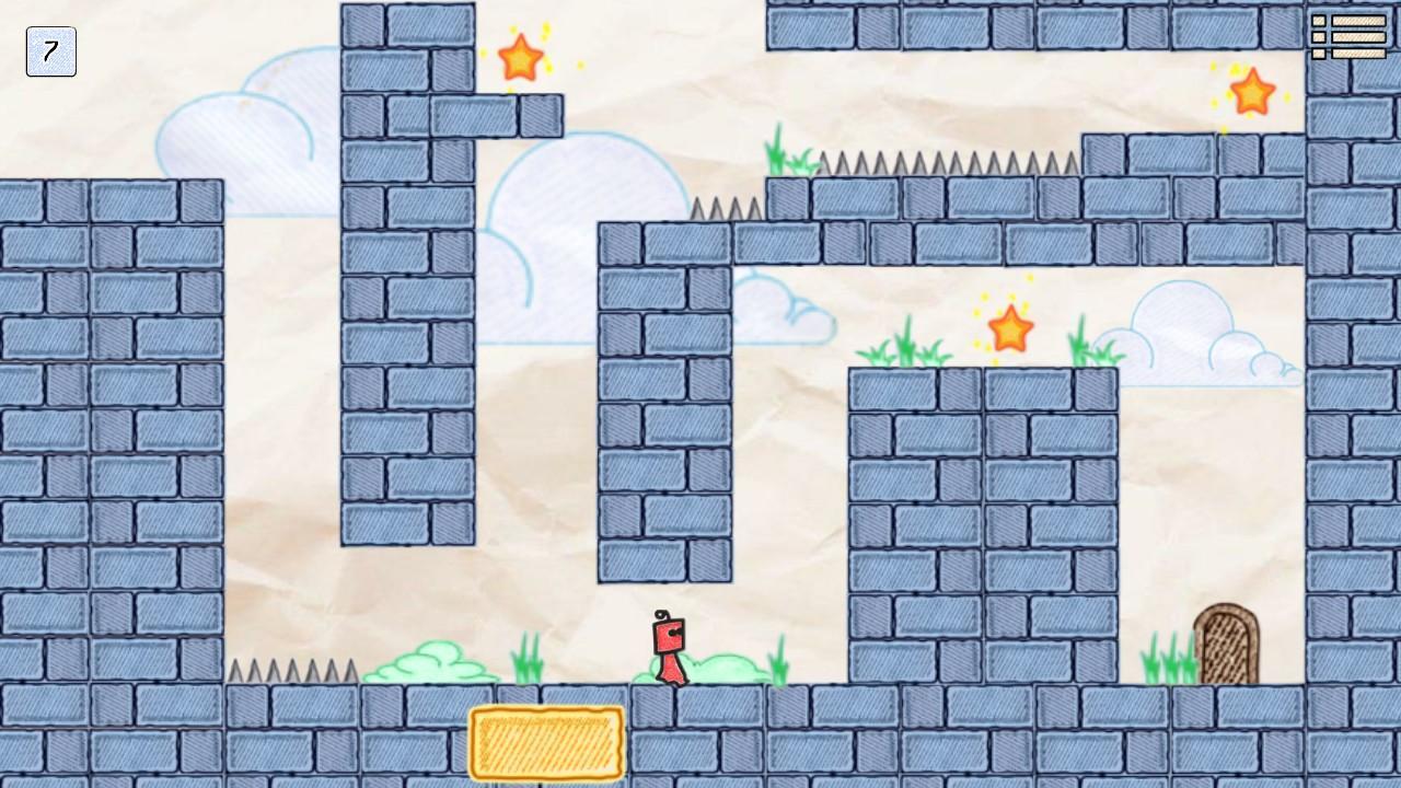 - Collectez trois étoiles pour ouvrir la porte brune.