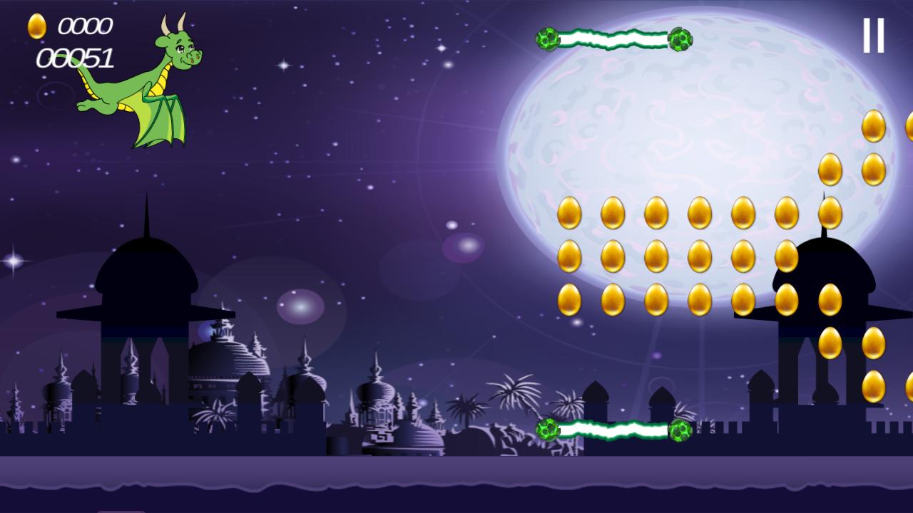 Volez votre dragon vers la sécurité dans cette jolie aventure et collectez des œufs dorés!