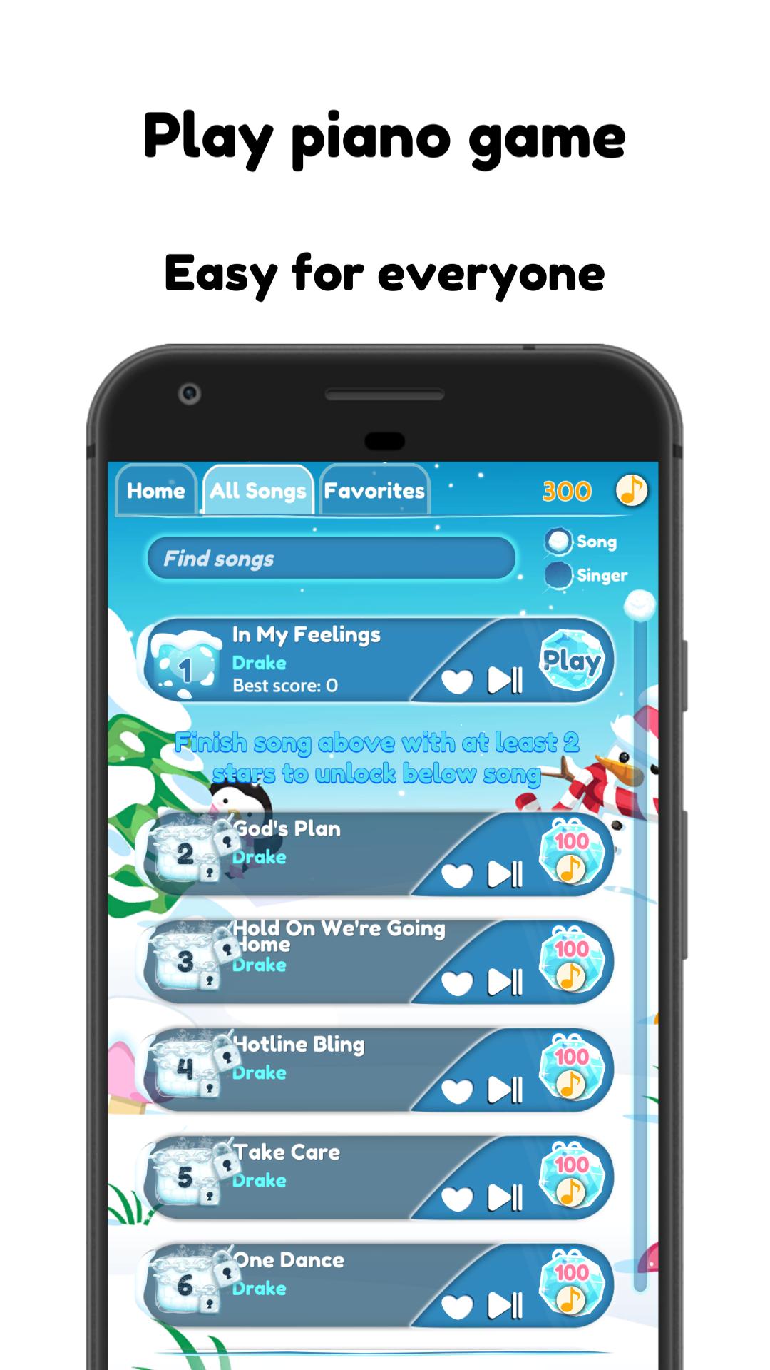 Drake Songs est désormais disponible en jeux de piano avec des carreaux de piano. Jouez à des jeux de piano avec une mélodie exacte de Drake Song. Nous n'utilisons pas de fausses carreaux de piano dans l'écran. Installez Drake Piano Tiles 2 maintenant