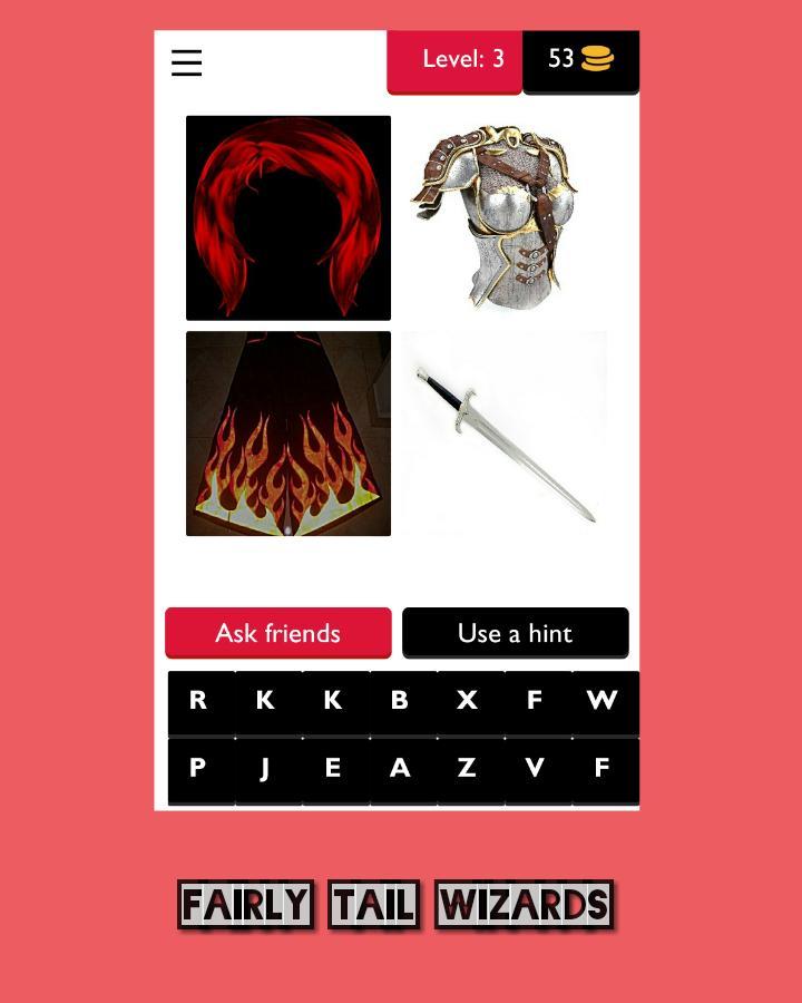 Fairy Tail Wizards vous apporte un jeu où vous pouvez deviner vos personnages de queue Fairy (Wizards) préférés à l'aide de 4 photos.